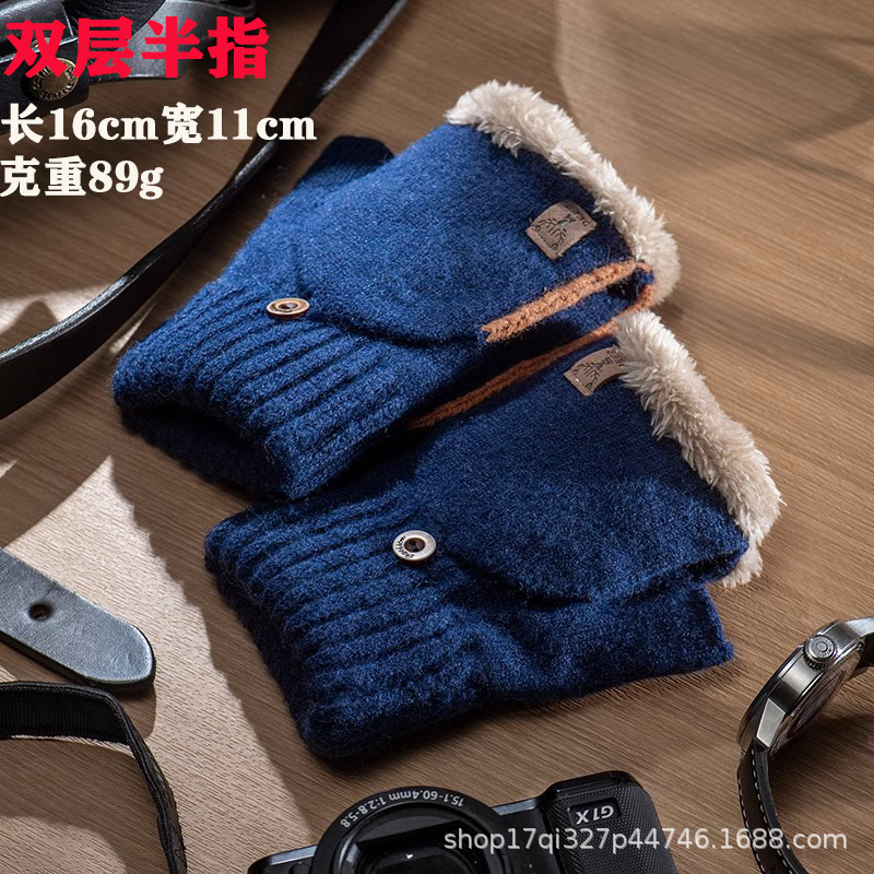 • 네이비 블루 [이중 두껍게] 북극 벨벳/반손가락