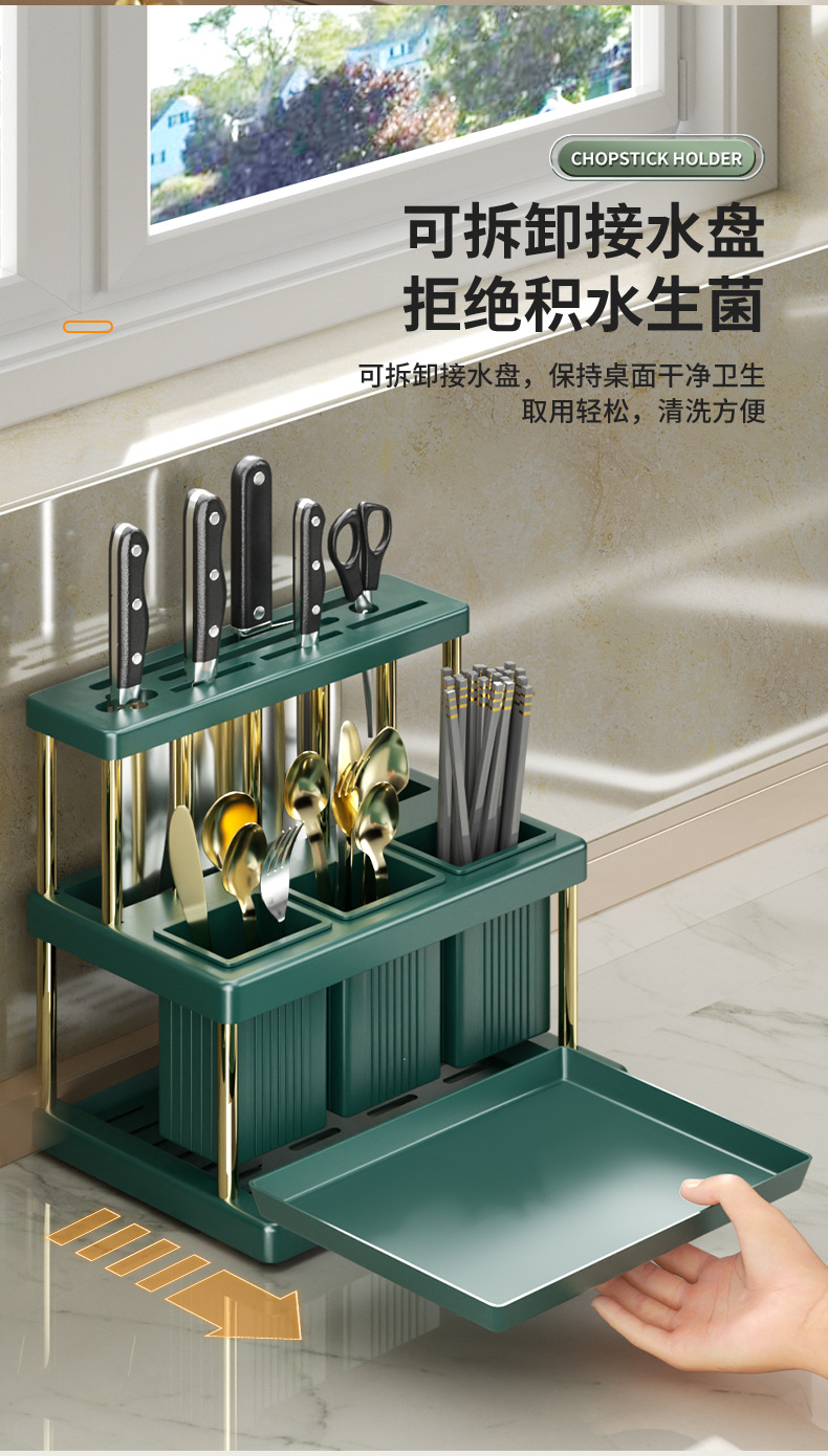 • 그린 골드 더블 배럴 젓가락 랙