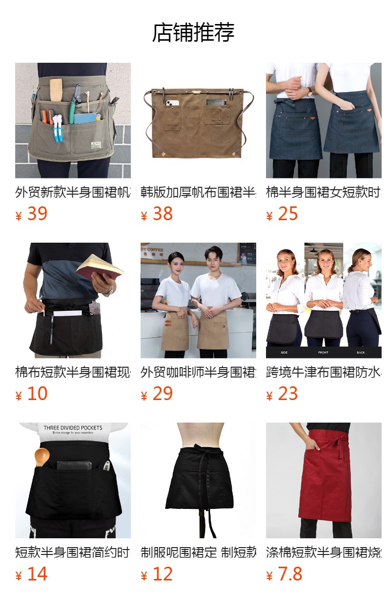 아마존 흉상 앞치마 인쇄 로고 우유 찻집 커피 숍 작업복 짧은 반 캔버스 앞치마 도매스토어 가기