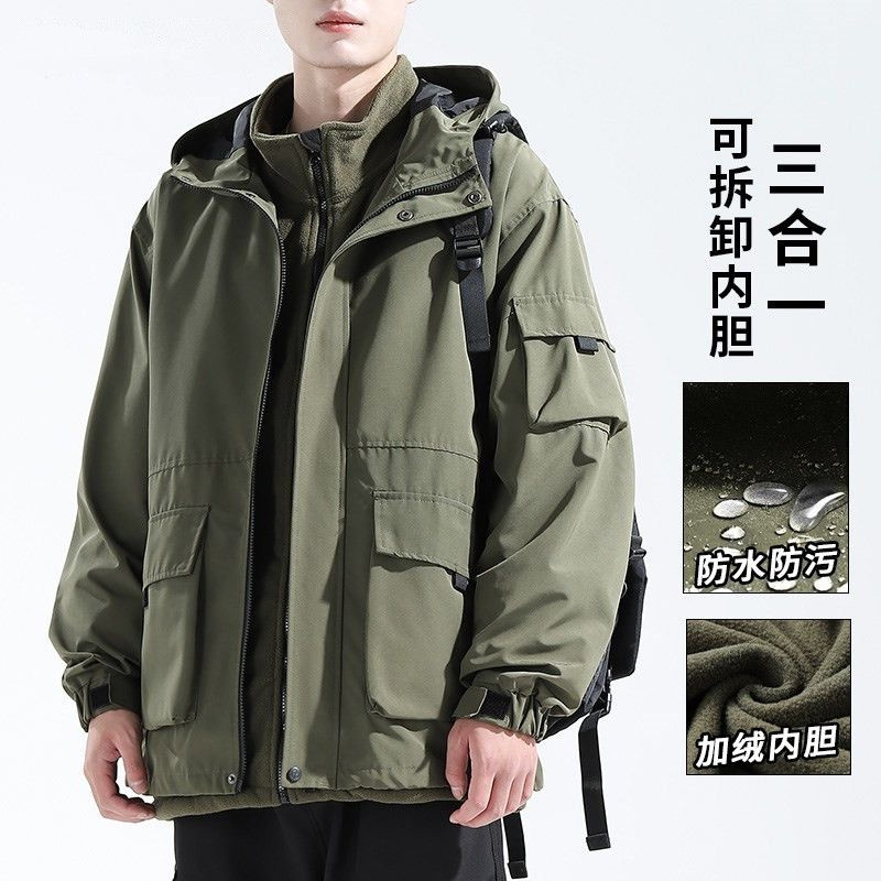 재킷 코트 남자의 가을과 겨울 방풍 방수 충전 옷 야외 등산 후드 멀티 포켓 툴링 단색 트렌디 트렌치 코트스토어 가기