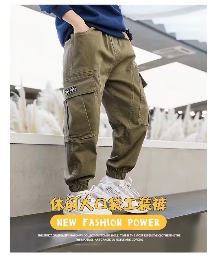 남아 가을 바지 봄 가을 스타일 2025 신상 아동 작업복 바지 중대형 아동 가을 긴바지 남아 캐주얼 바지스토어 가기