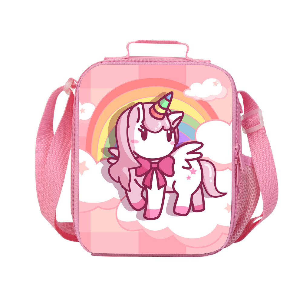 2023新款可爱卡通午餐包儿童饭盒保温袋零食水果保鲜袋斜挎便当包