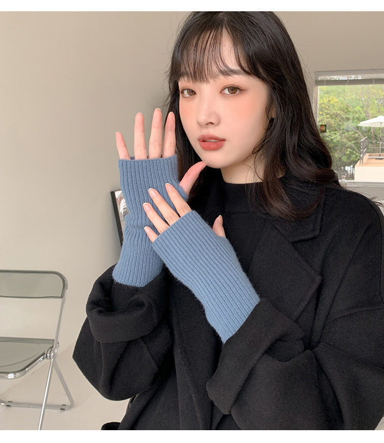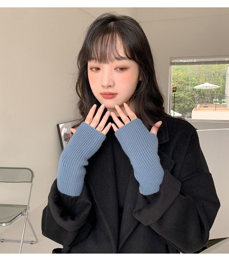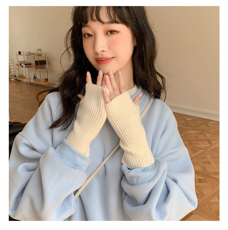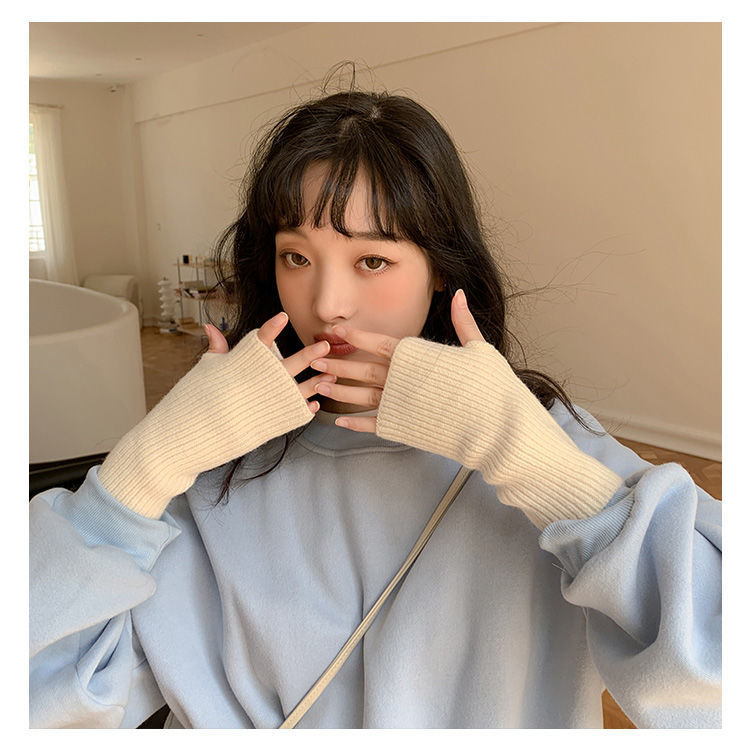 2023 가을과 겨울 두꺼운 따뜻한 반 손가락 니트 장갑 여학생 쓰기 손가락 터치 스크린 손목 울 소매