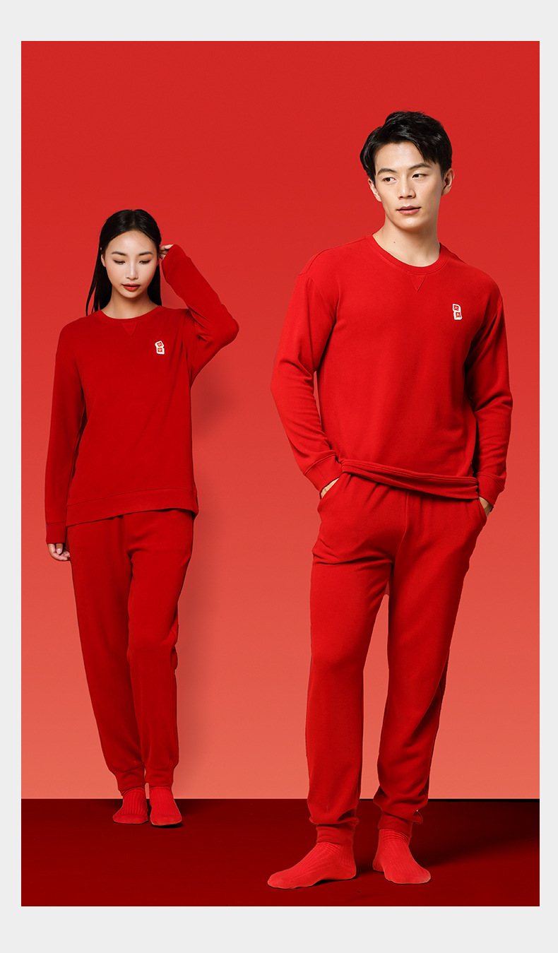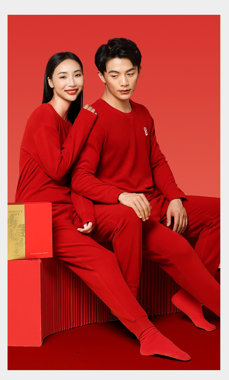 [슌 풍우표] 텐셀 난방 벨벳 가을과 겨울 커플 레드 올해 따뜻한 가정복 신혼 세트