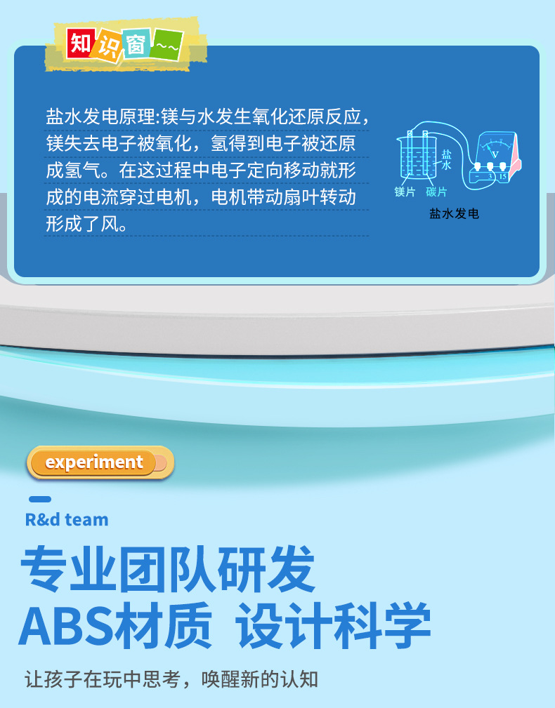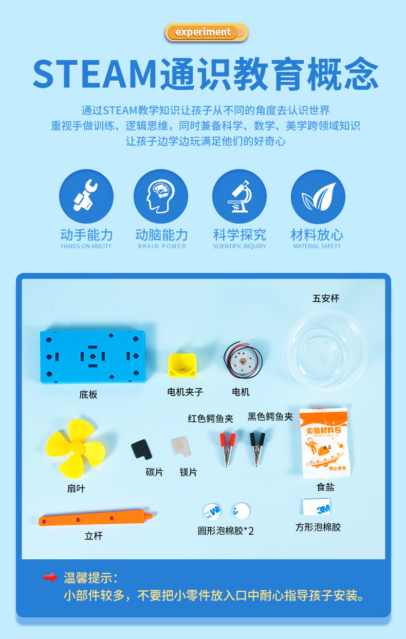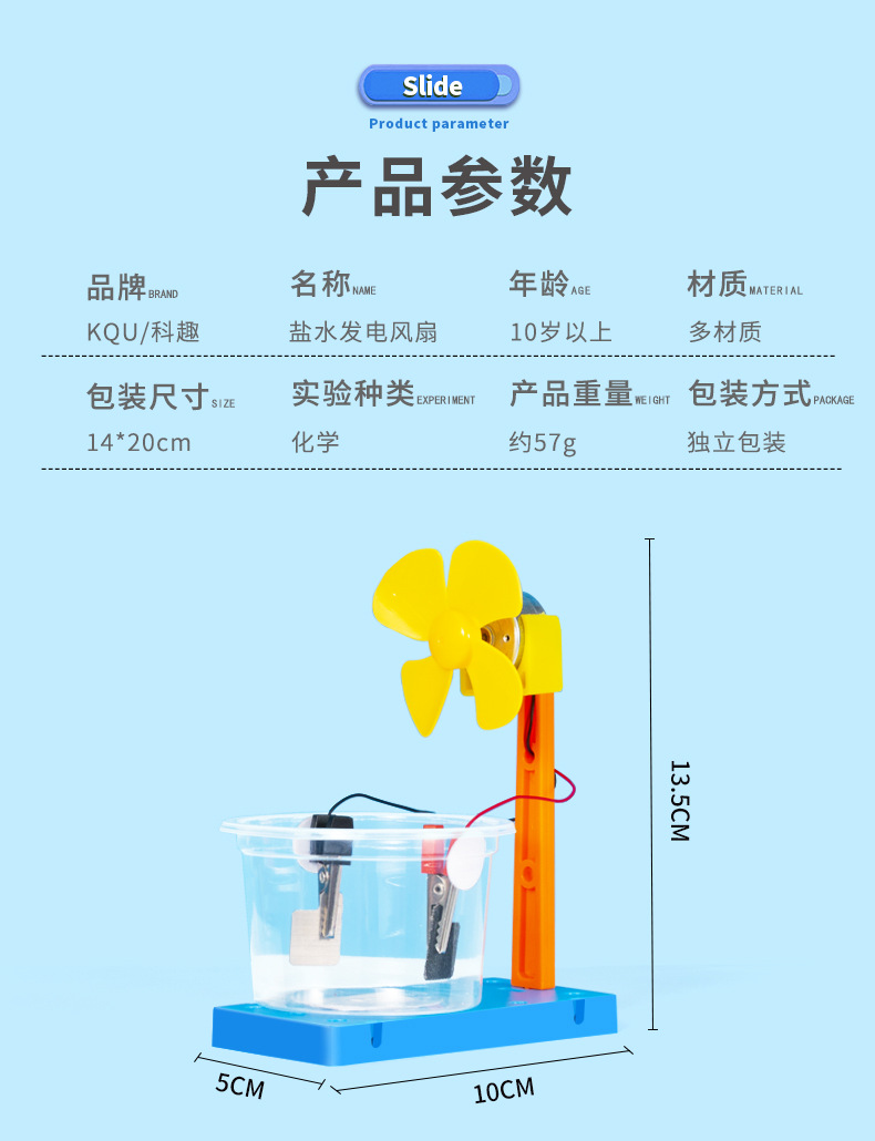 과학 실험 DIY 소금물 전력 발전 팬 과학 기술 소량 생산 화학 어린이 수제 학생 재료 패키지 세트스토어 가기