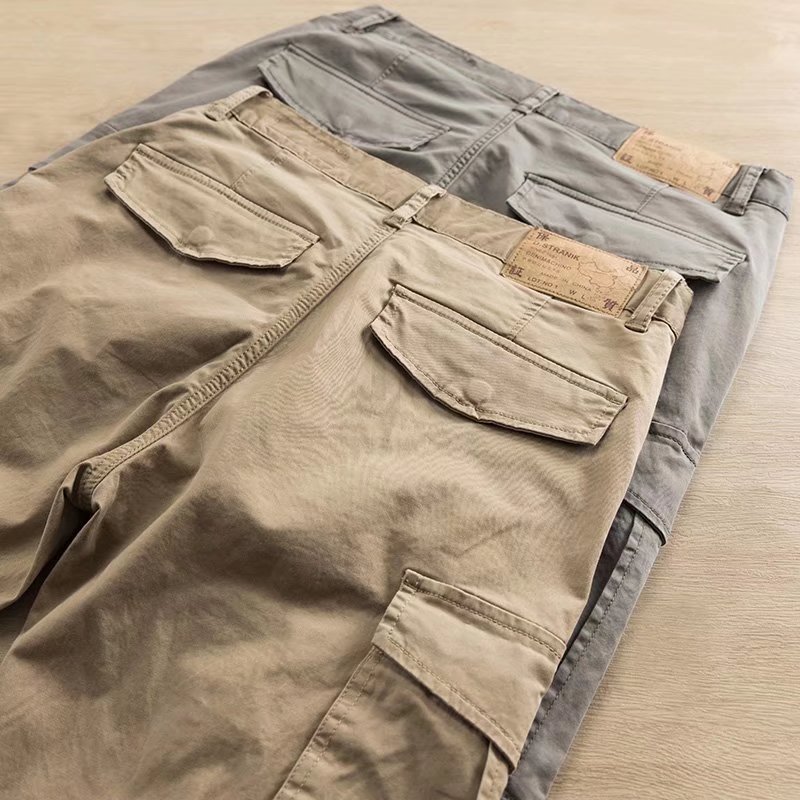 한국식 트렌디 한 바지 남성용 느슨한 스트레이트 캐주얼 바지 가을과 겨울 트렌디 브랜드 멀티 포켓 디자인 내마모성 작업 바지스토어 가기