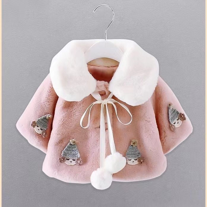 여아 겨울 코트 모직 스웨터 어린이 맞춤형 유행 브랜드 아기의 모피 칼라 만화 두꺼운 면 모조 모피 코트스토어 가기