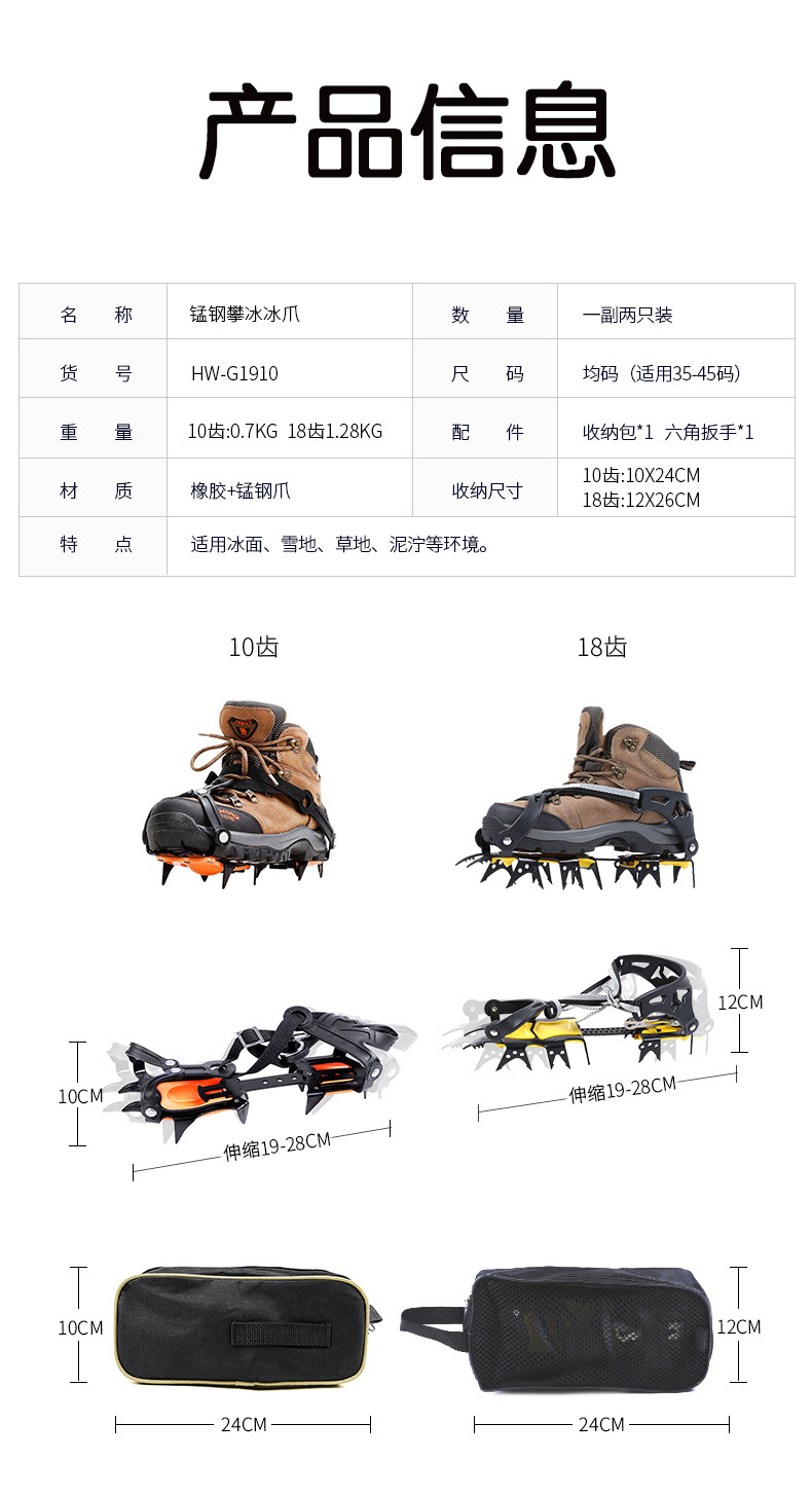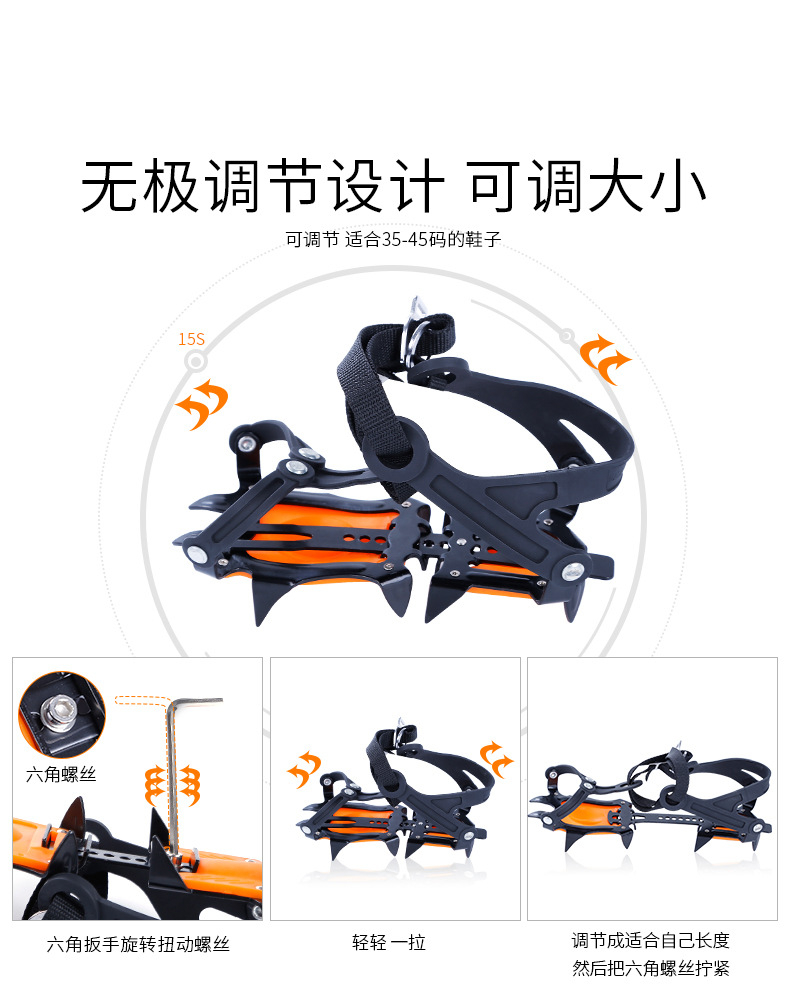 야외 얼음 발톱 휴대용 얼음 등반 미끄럼 방지 용품 높은 망간 강철 암벽 등반 10 치아 미끄럼 방지 신발 커버 체인 네일 신발스토어 가기