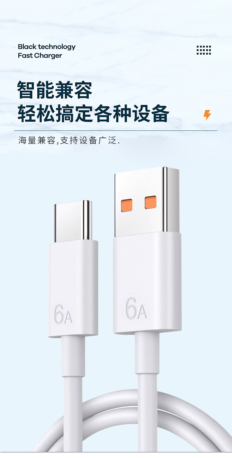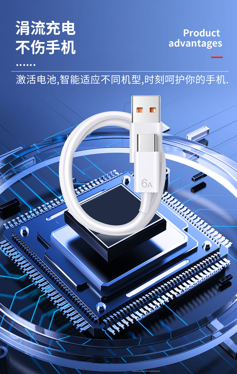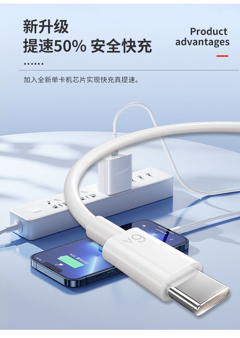 Type-c 고속 충전 데이터 케이블은 Mate40/P50 충전 케이블에 적합합니다. typec 6A 초고속 충전 데이터 케이블스토어 가기