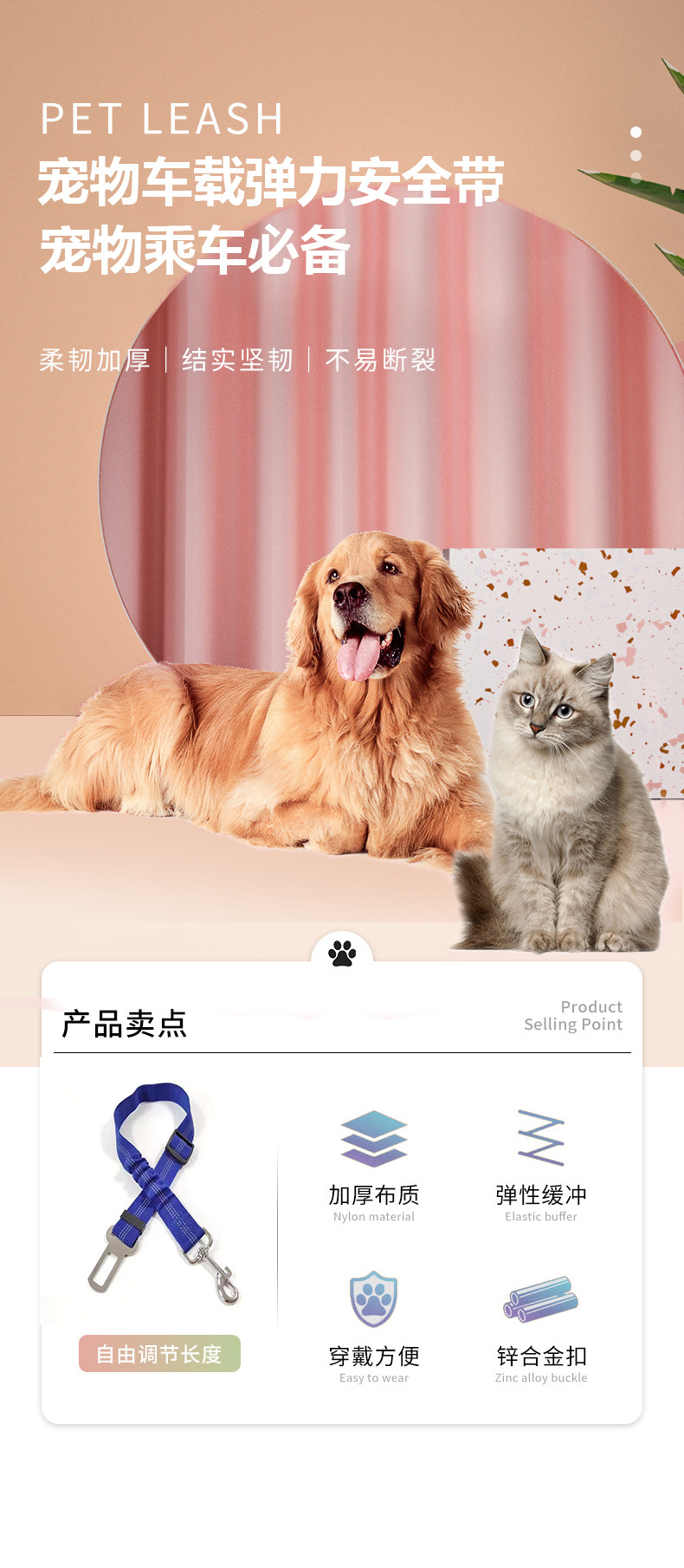 애완 동물 제품 자동차 안전 벨트 개 고양이 견인 벨트 텔레스코픽 버퍼 탄성 반사 안전 로프 견인 로프스토어 가기