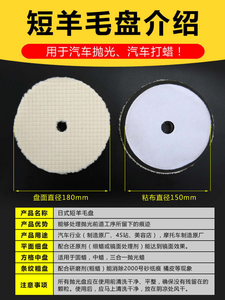 羊毛球能提高抛光效率和抛光效果。主要用于各类家私、汽车制造、汽车轮毂、五金、铜器的最后一道抛光程序,专用于表面及零部件的打磨抛光。配合研磨剂(粗蜡)使用能消除2000号砂纸痕 橘皮等现象、配合还原剂(细蜡或叫镜面处理剂)使用能让产品涂层达到镜面效果。