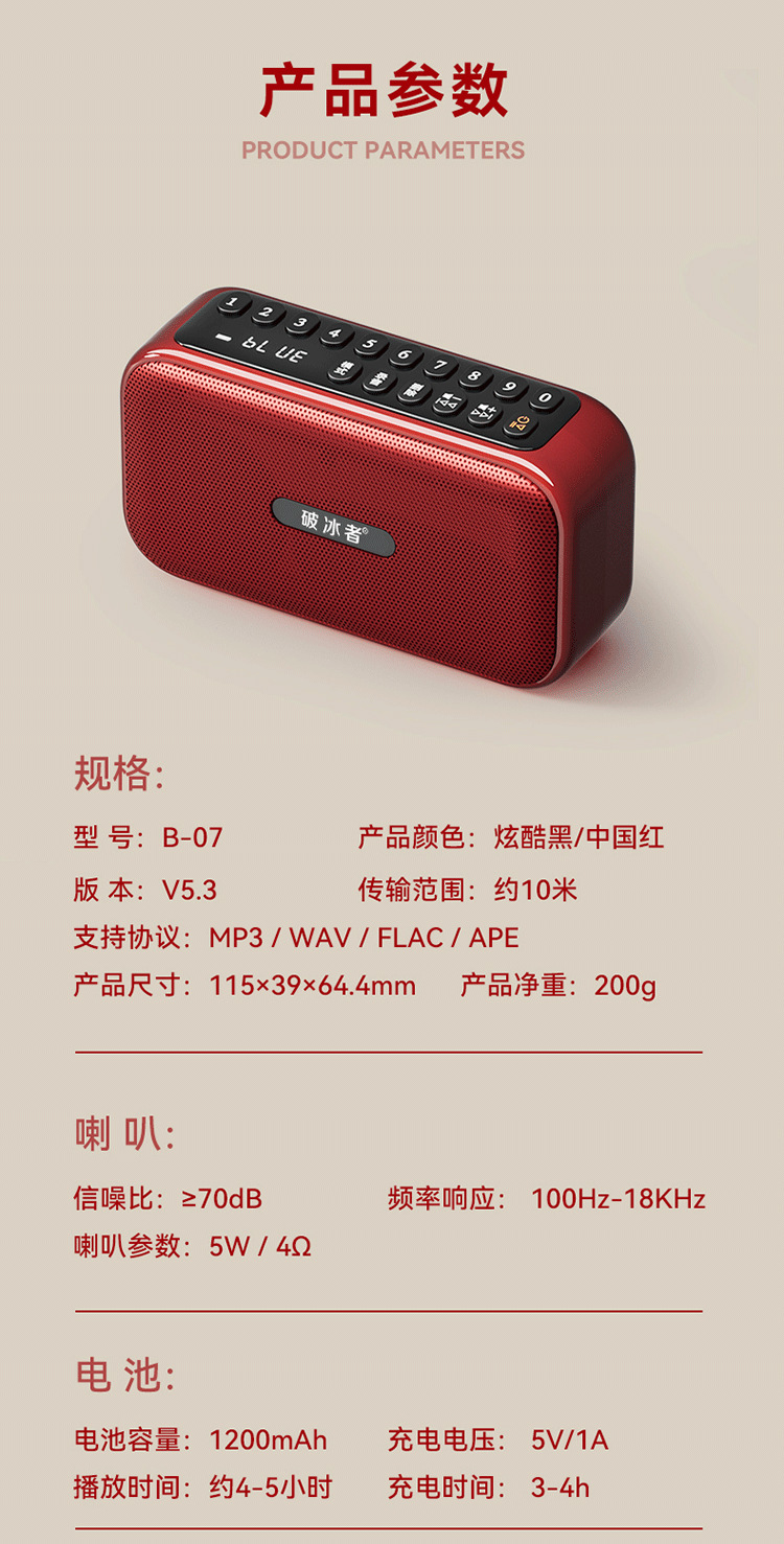 쇄빙선 B07 무선 블루투스 스피커 대용량 휴대용 야외 홈 오디오 자동차 과체중 서브 우퍼