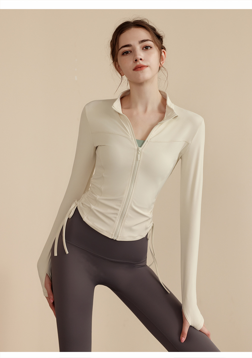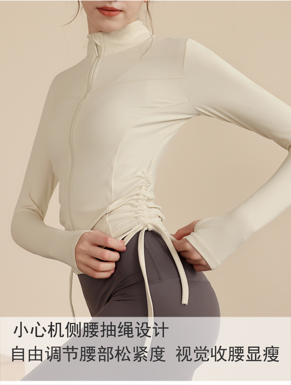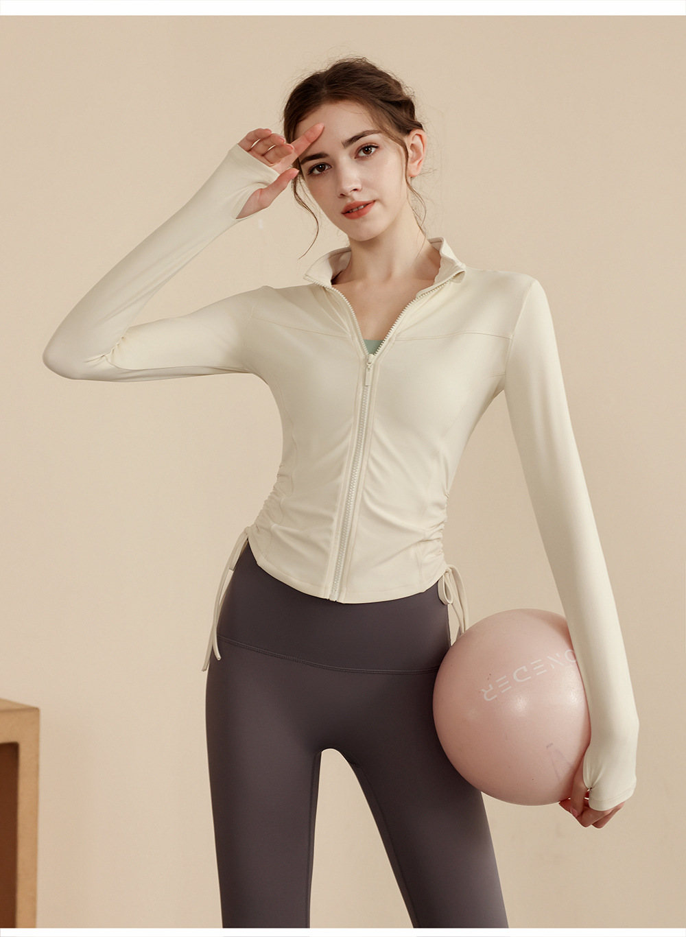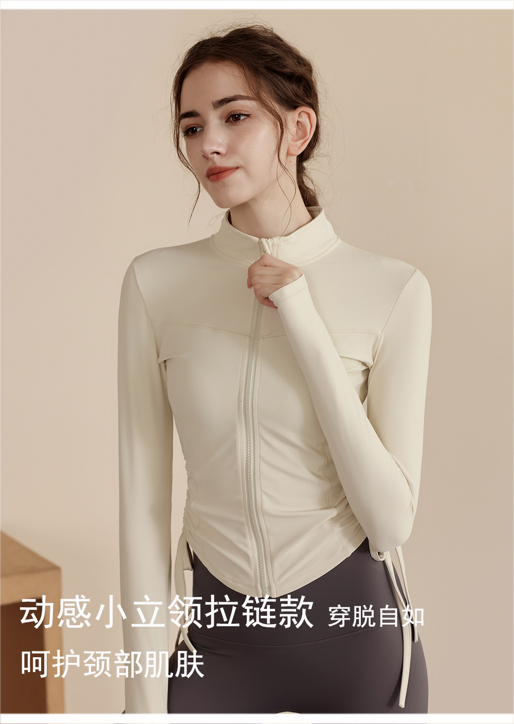 요가 의류 여성용 수직 칼라 지퍼 스포츠 자켓 드로우 스트링 빠른 건조 슬림 핏 피트니스 의류 긴팔 운동복 탑