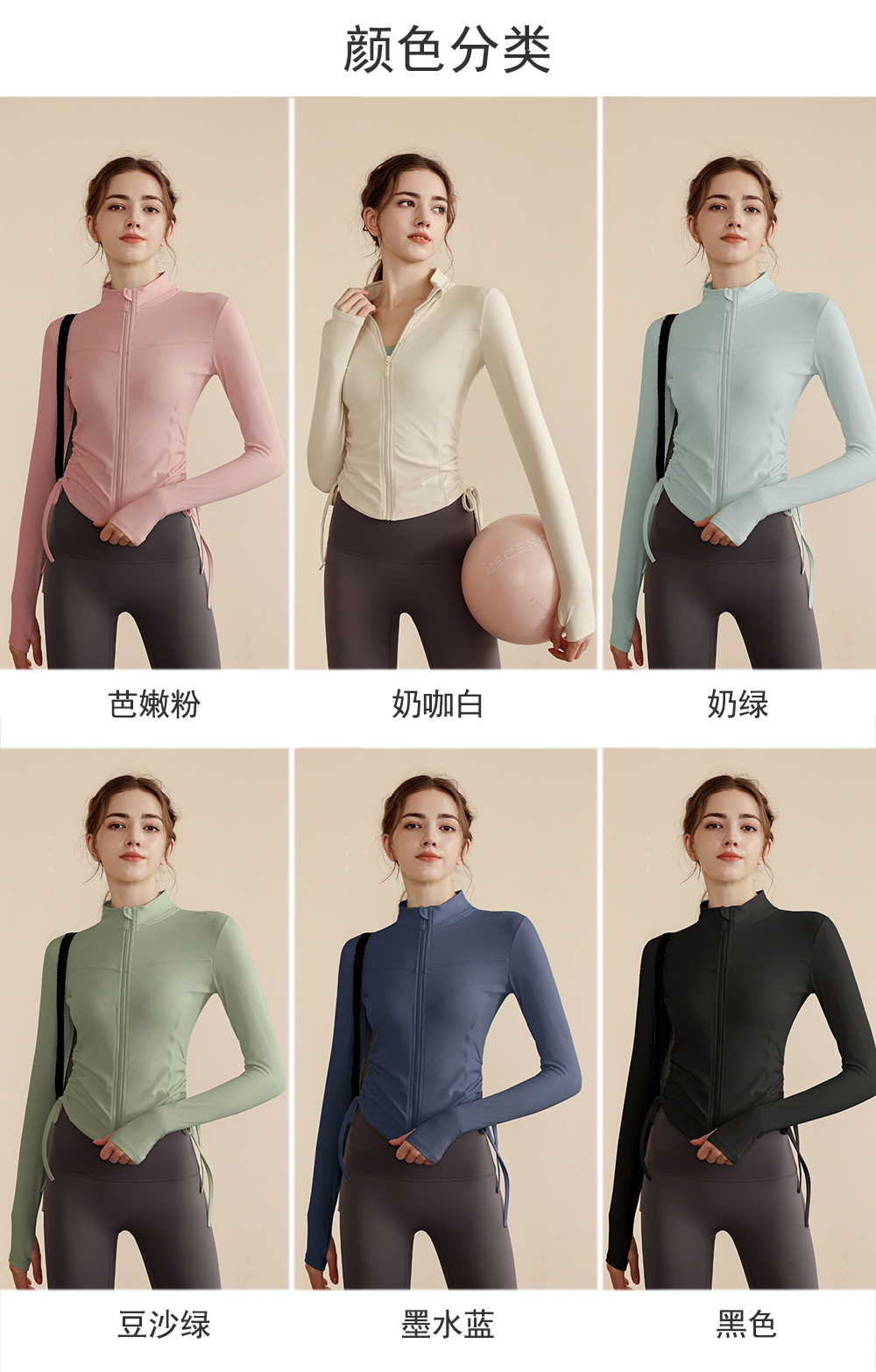 요가 의류 여성용 수직 칼라 지퍼 스포츠 자켓 드로우 스트링 빠른 건조 슬림 핏 피트니스 의류 긴팔 운동복 탑스토어 가기