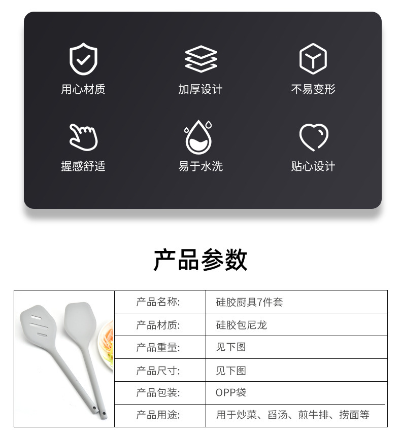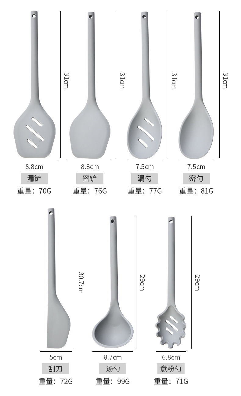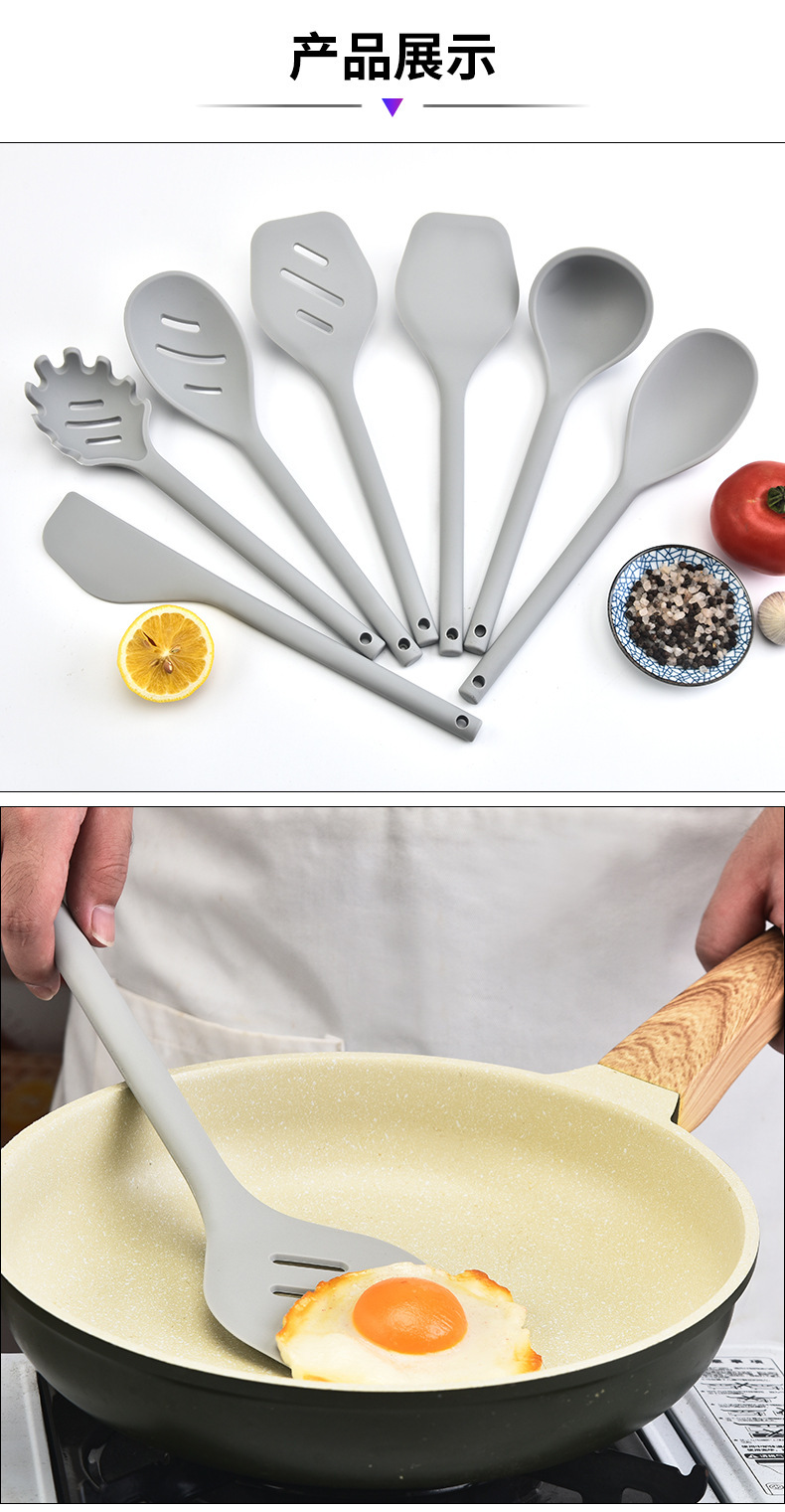 붙지 않는 특수 실리콘 조리기구 7 개 세트 주걱 수프 스푼 주걱 스푼 주방 조리 도구 식품 학년 고온 저항