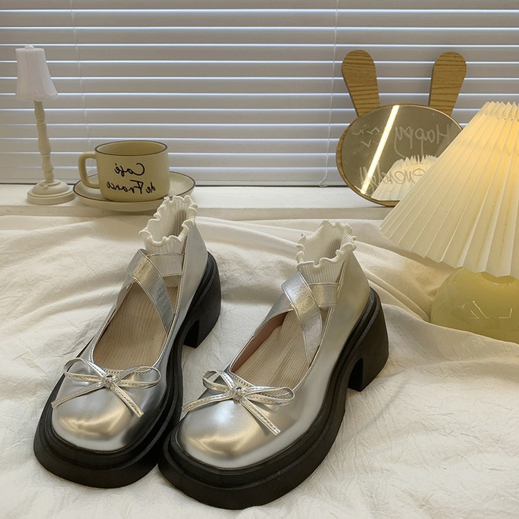 패션 메리 제인 작은 가죽 신발 여성의 2023 가을과 겨울 새로운 복고풍 영국 스타일 두꺼운 굽 하이힐 활 싱글 레이어 신발스토어 가기