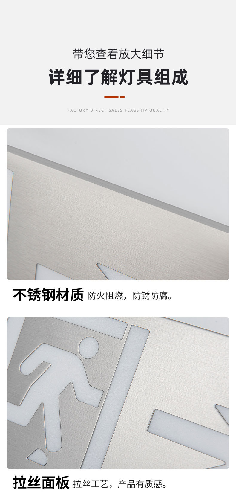 초박형 스테인레스 스틸 안전 출구 표지판 led 화재 비상등 비상 피난 표지판 표시등스토어 가기