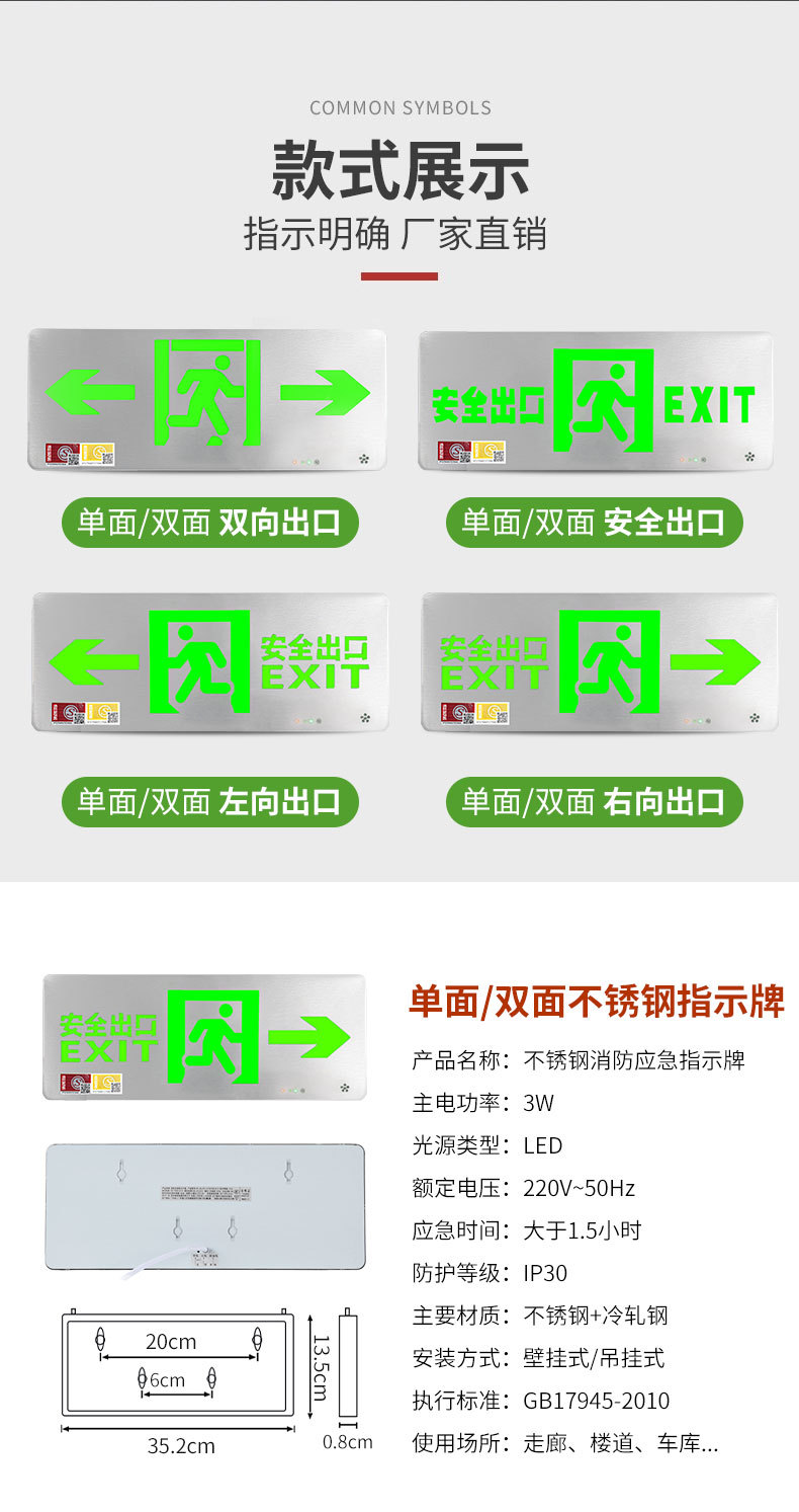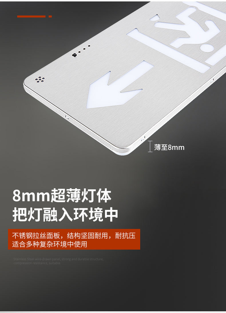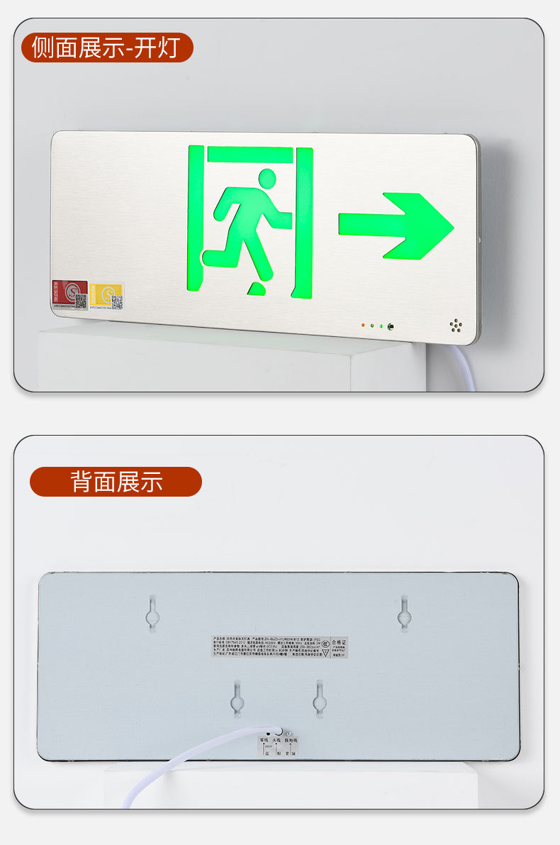 초박형 스테인레스 스틸 안전 출구 표지판 led 화재 비상등 비상 피난 표지판 표시등