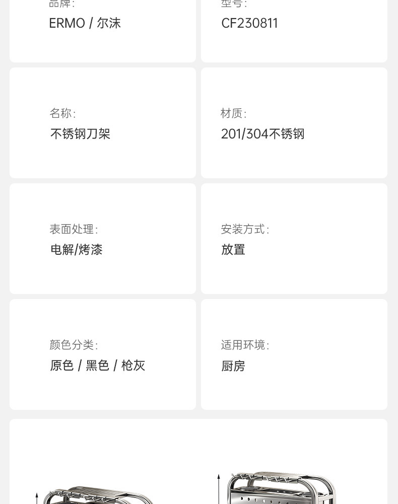• 기본 색상 업그레이드 높이 넓히기 [나이프 가드 보드 + 더블 젓가락 홀더 + 도마 홀더 + 냄비 커버 홀더]]