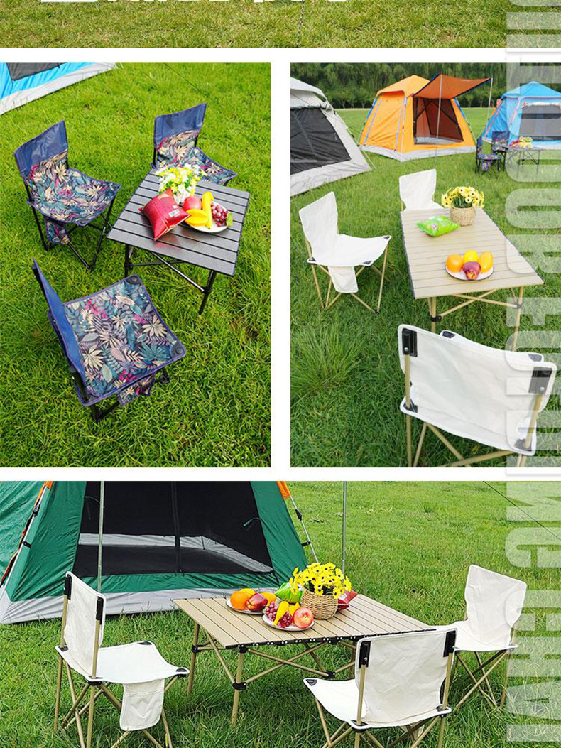 야외 접이식 테이블과 의자 세트 캠핑 낚시 의자 스톨 레저 의자 캠핑 바베큐 알루미늄 합금 계란 롤 테이블