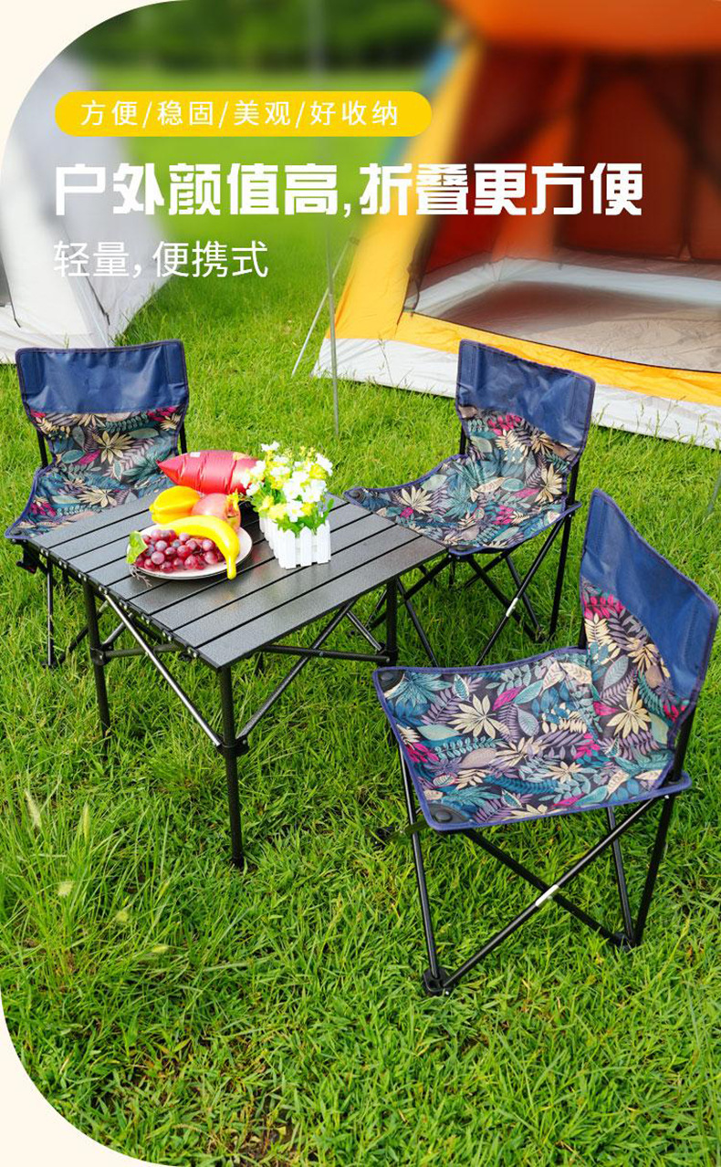 야외 접이식 테이블과 의자 세트 캠핑 낚시 의자 스톨 레저 의자 캠핑 바베큐 알루미늄 합금 계란 롤 테이블스토어 가기