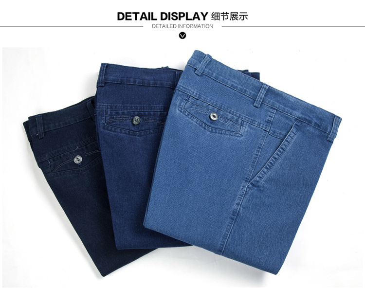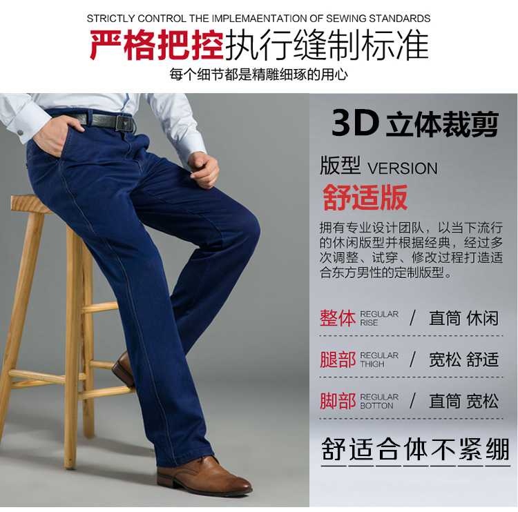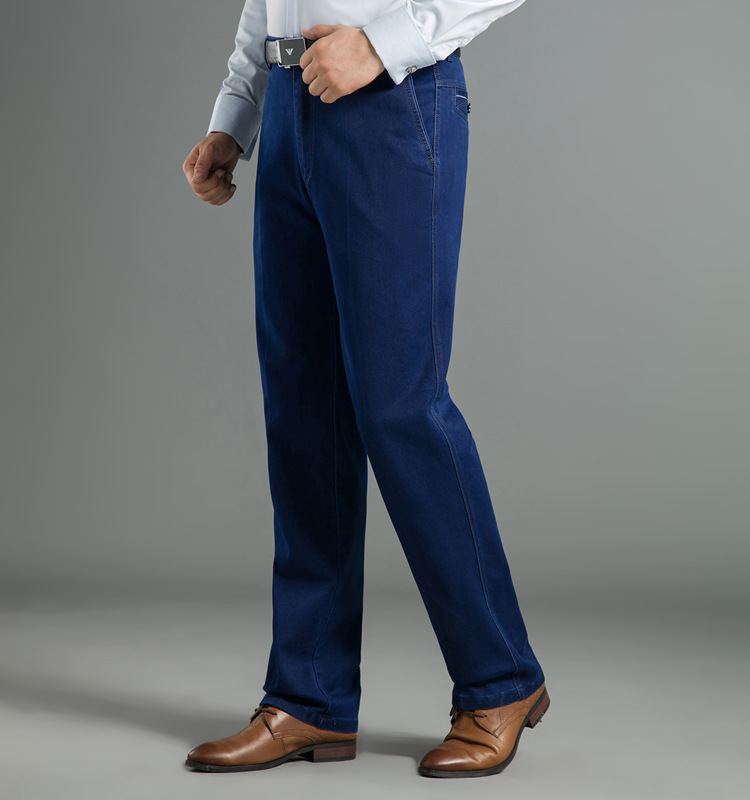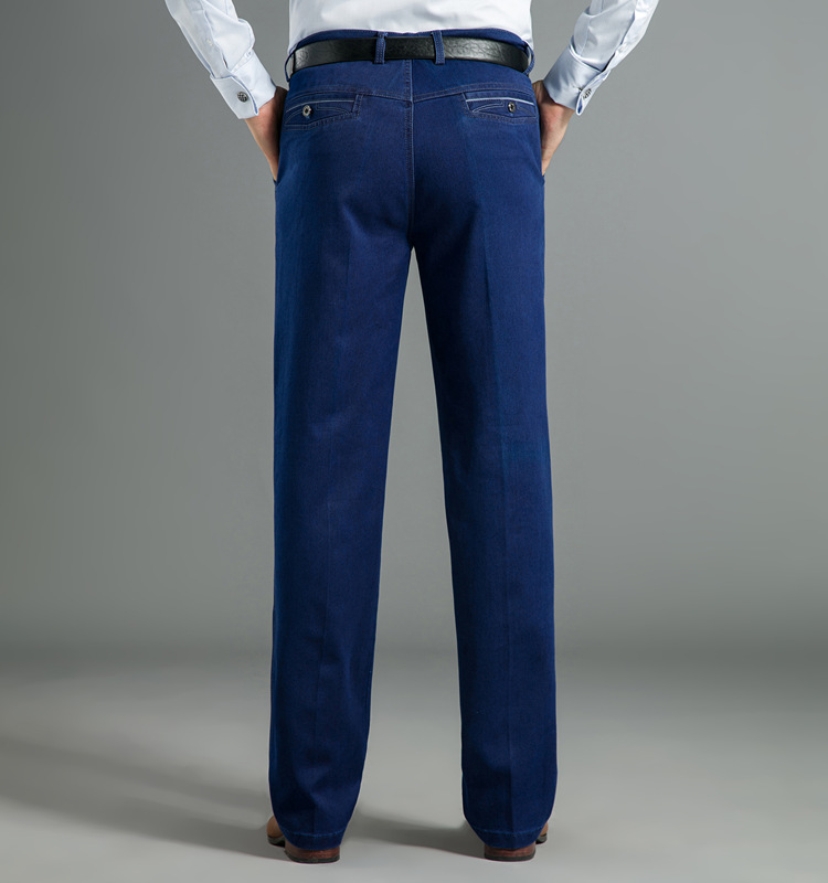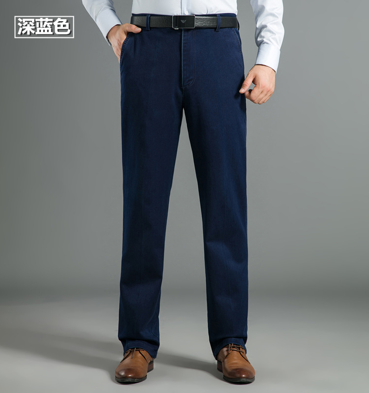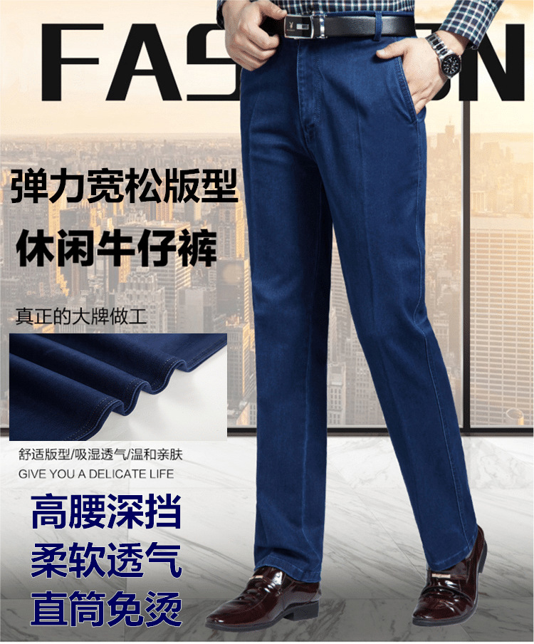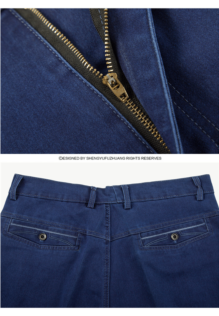 가을과 겨울 두꺼운 중년 청바지 남성용 탄성 하이 웨이스트 딥 가랑이 스트레이트 느슨한 아빠 캐주얼 롱 팬츠스토어 가기