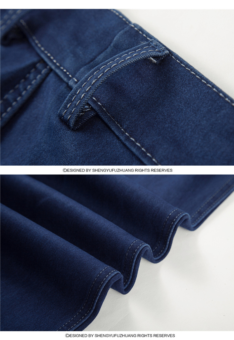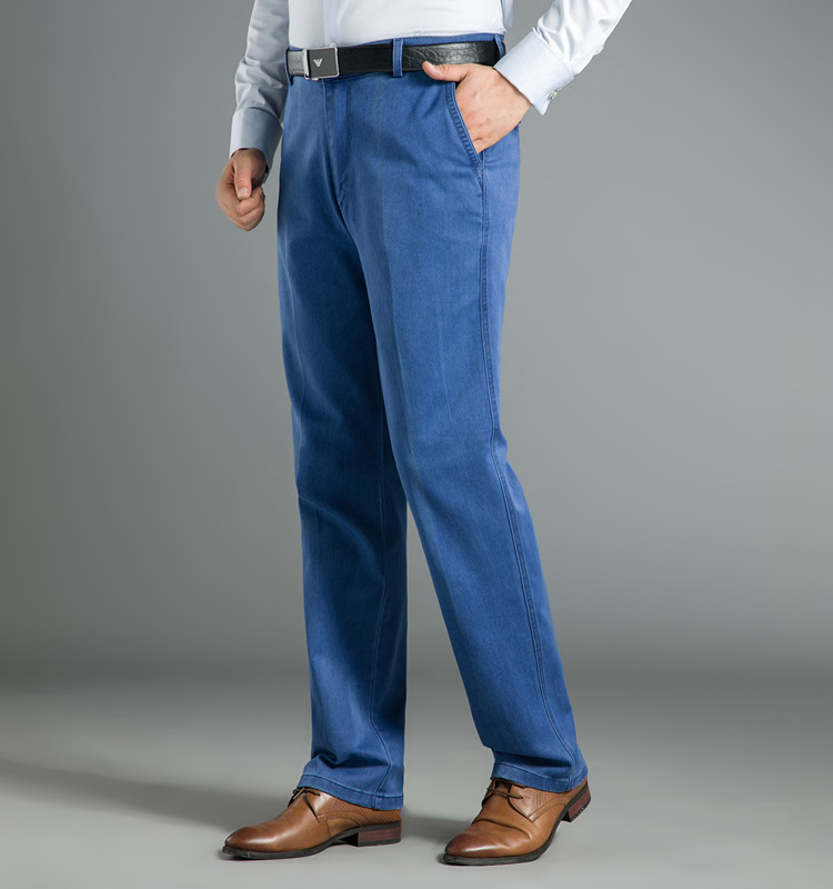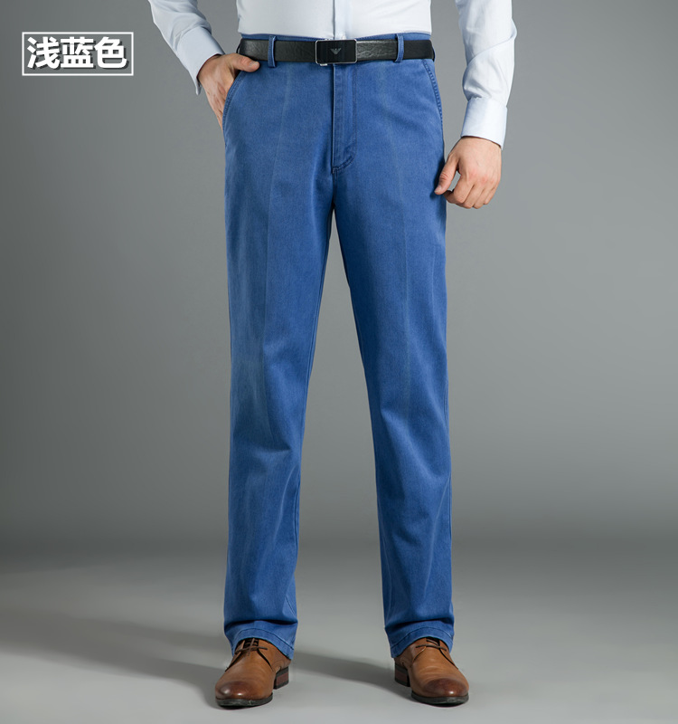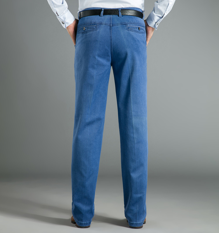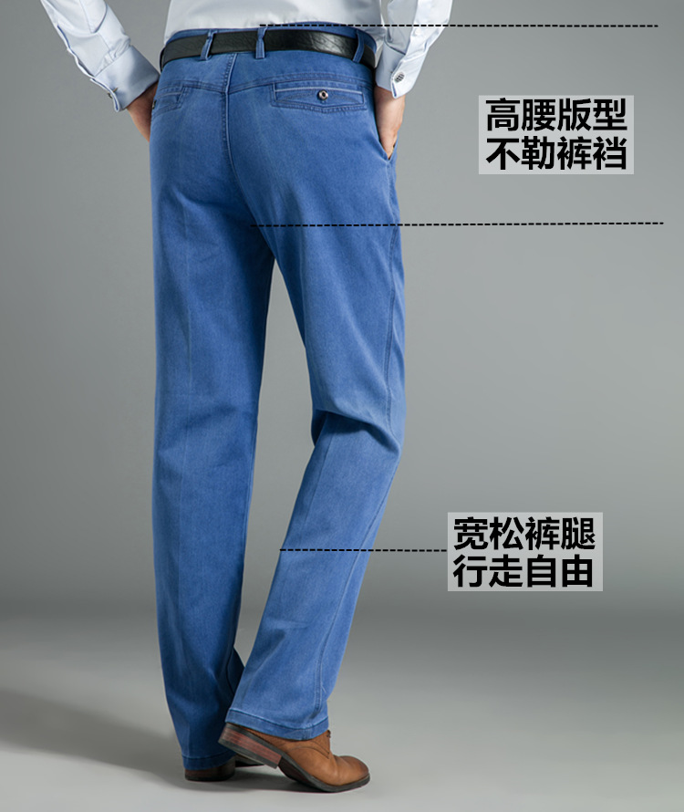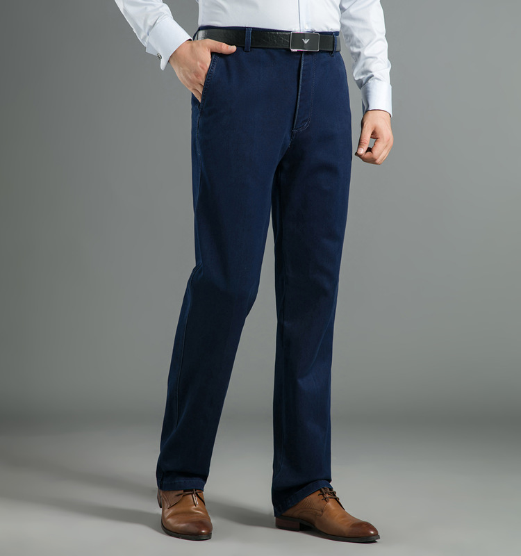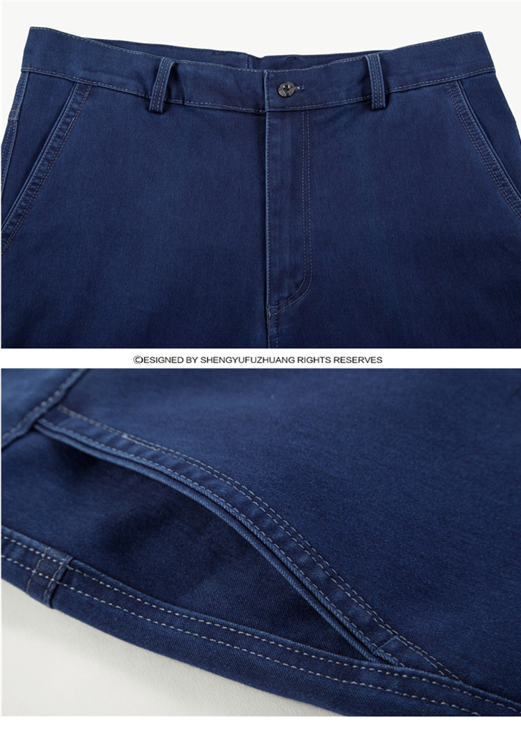 가을과 겨울 두꺼운 중년 청바지 남성용 탄성 하이 웨이스트 딥 가랑이 스트레이트 느슨한 아빠 캐주얼 롱 팬츠스토어 가기
