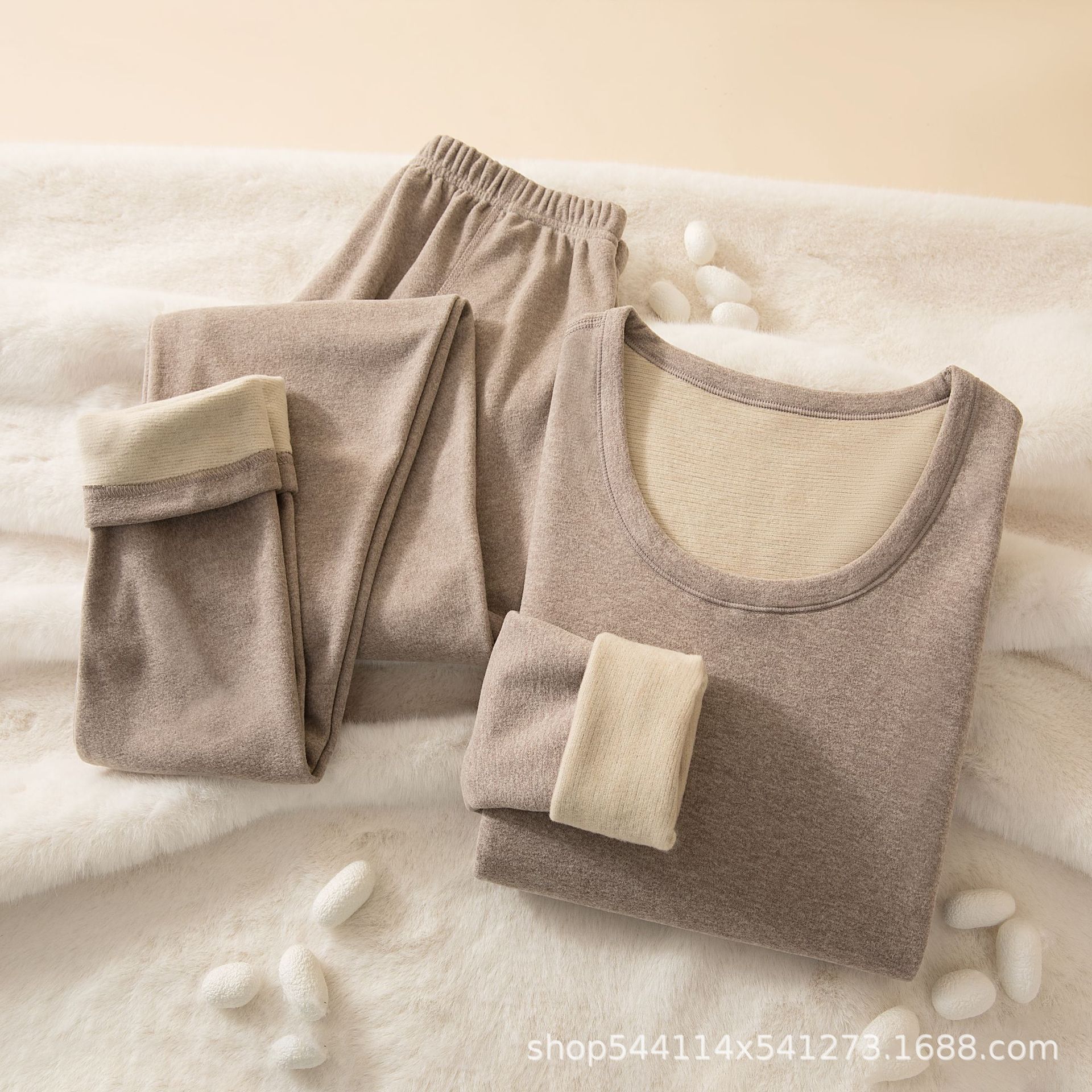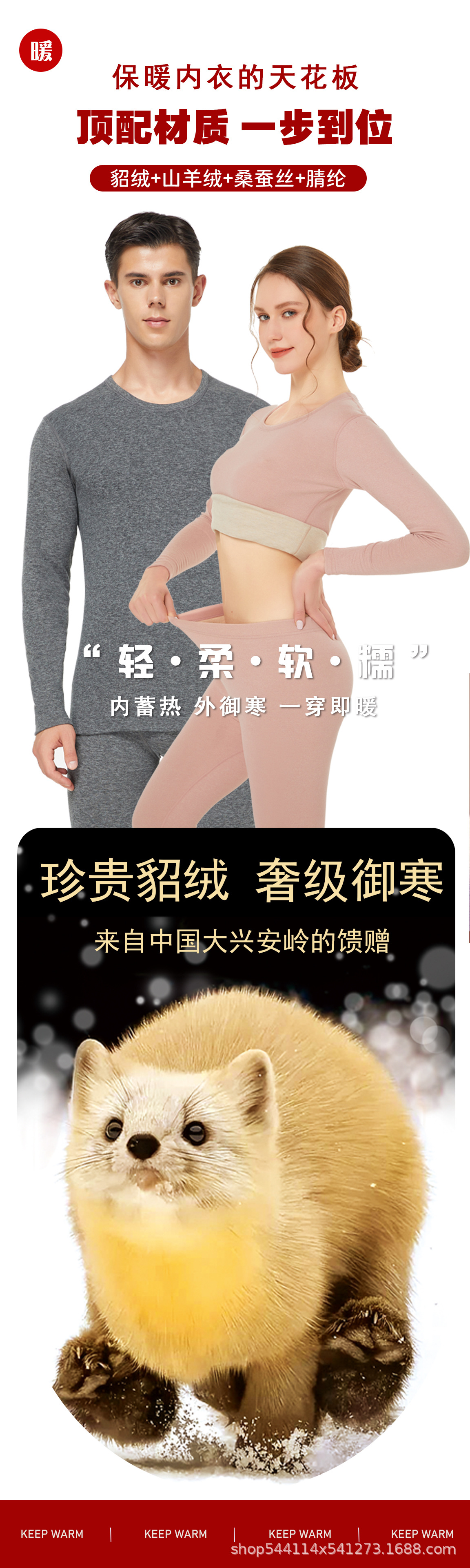 밍크 벨벳 캐시미어 뽕나무 실크 열 속옷 세트 남자의 가을 옷 가을 바지 여자의 따뜻한 옷 커플의 가을과 겨울