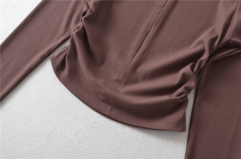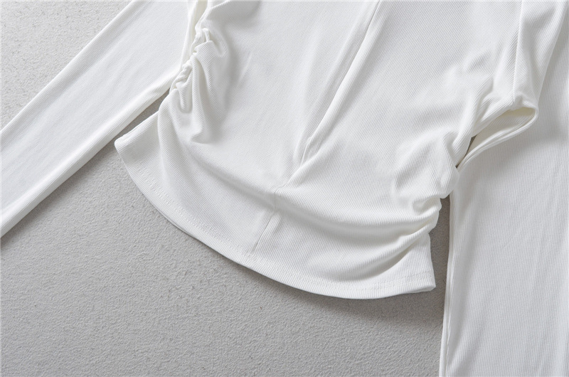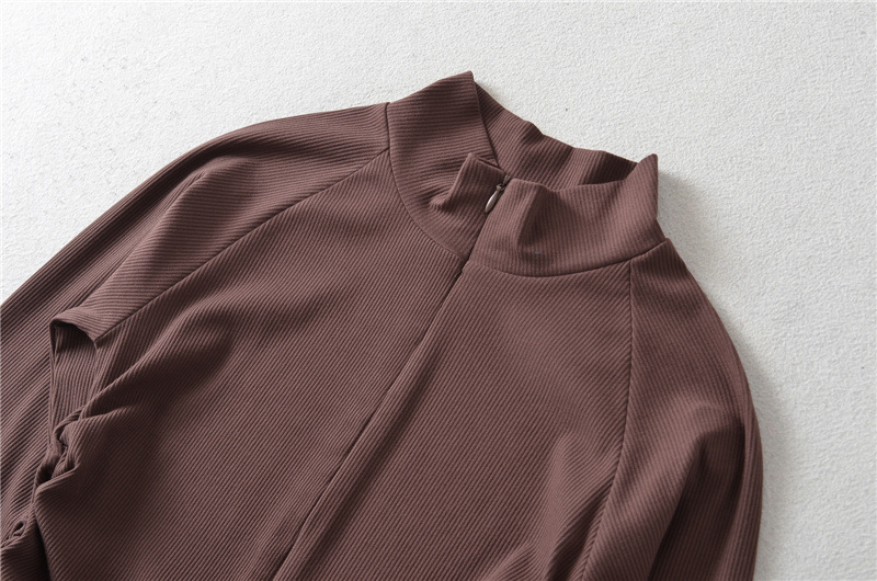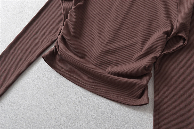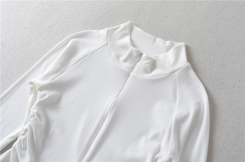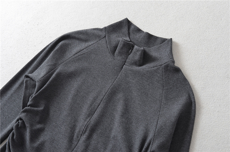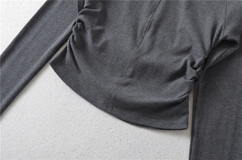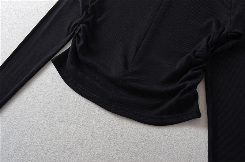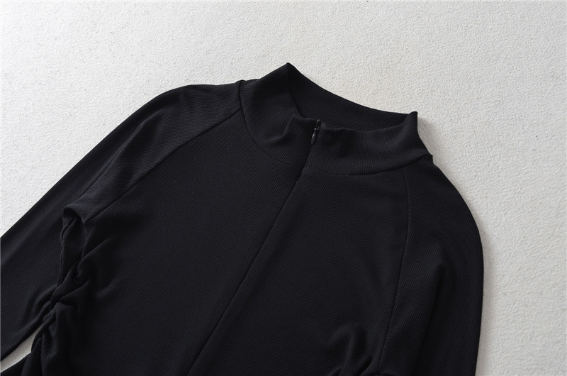 순수한 욕망 스타일 세로 칼라 지퍼 사이드 플리츠 짧은 긴팔 티셔츠 가을 새로운 슬림 핏 스파이스 걸 하의 여성용 탑스토어 가기