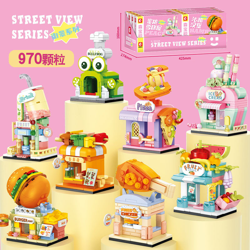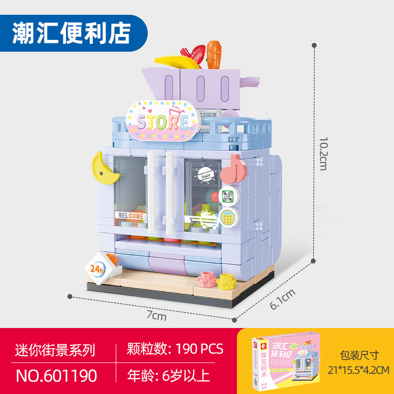 Senbao 빌딩 블록 미니 스트리트 뷰 601118 창조적 인 조립 건물 집 작은 상점 장난감 창조적 인 어린이 선물스토어 가기