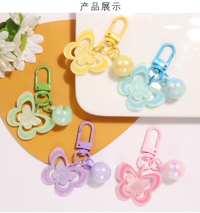 새로운 캔디 컬러 중공 나비 자동차 키 체인 컬러 페인트 도어 후크 액세서리 헤드셋 가방 매달려 장식품