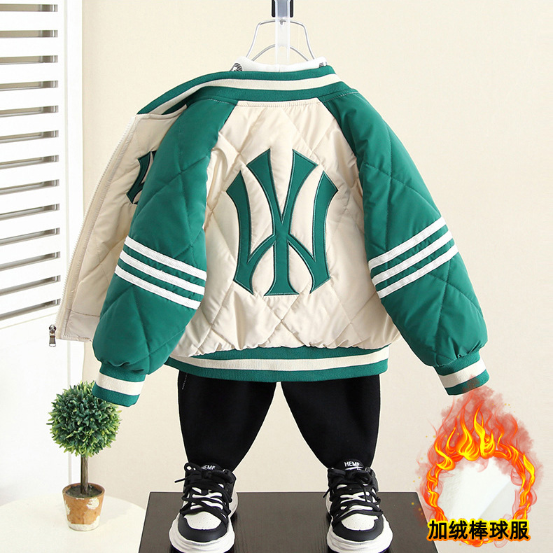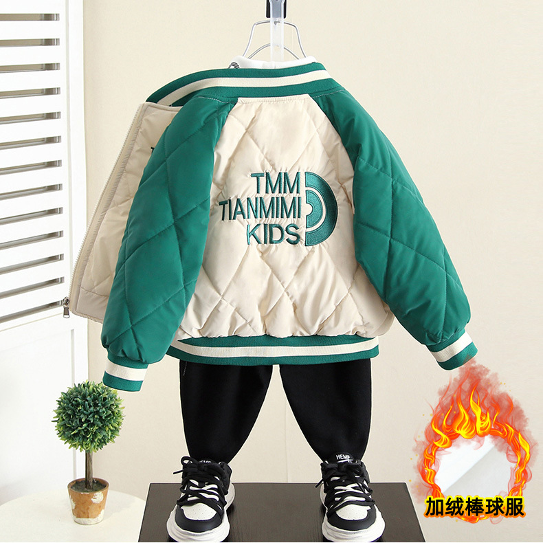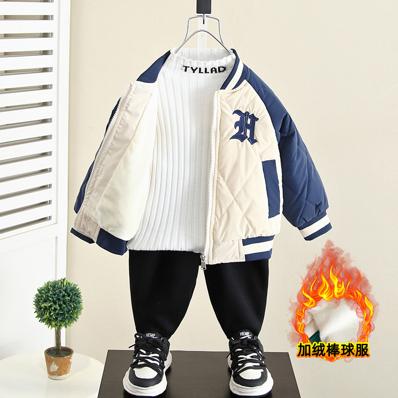 4292 소년 기모 야구 세트 코트 가을과 겨울 2023 새로운 겨울 재킷 탑 아기 두꺼운 면 패딩 재킷스토어 가기