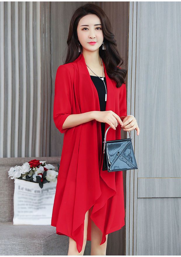 여성용 쉬폰 셔츠 2024 새로운 봄, 여름 스타일 숄, 중간 길이 가디건, 얇은 재킷