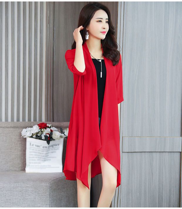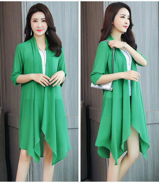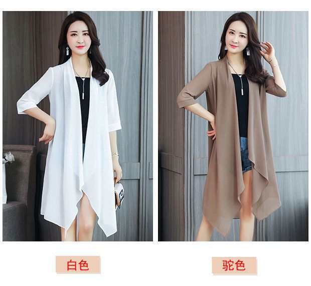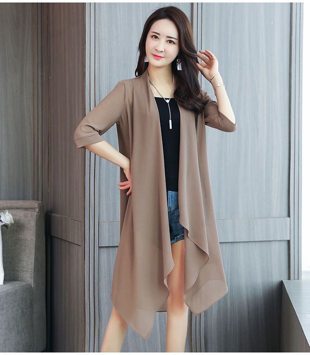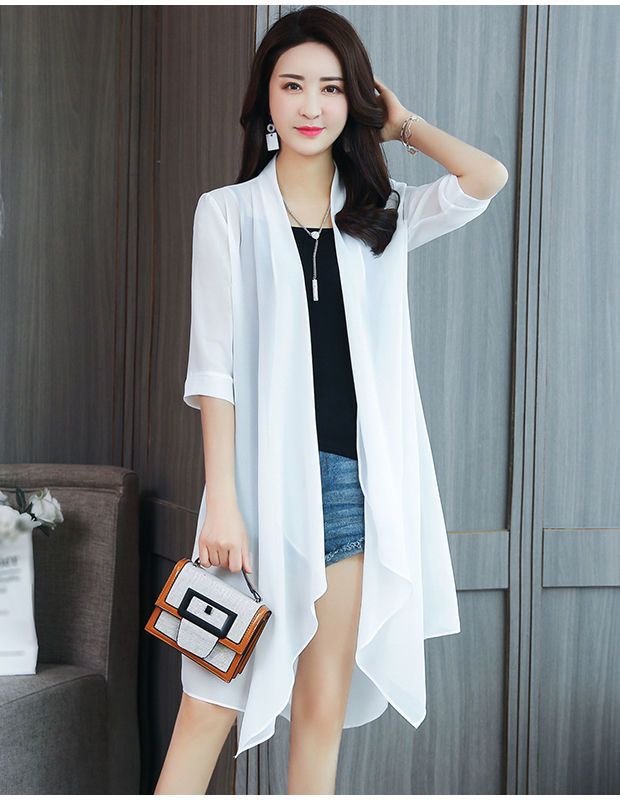 여성용 쉬폰 셔츠 2024 새로운 봄, 여름 스타일 숄, 중간 길이 가디건, 얇은 재킷스토어 가기