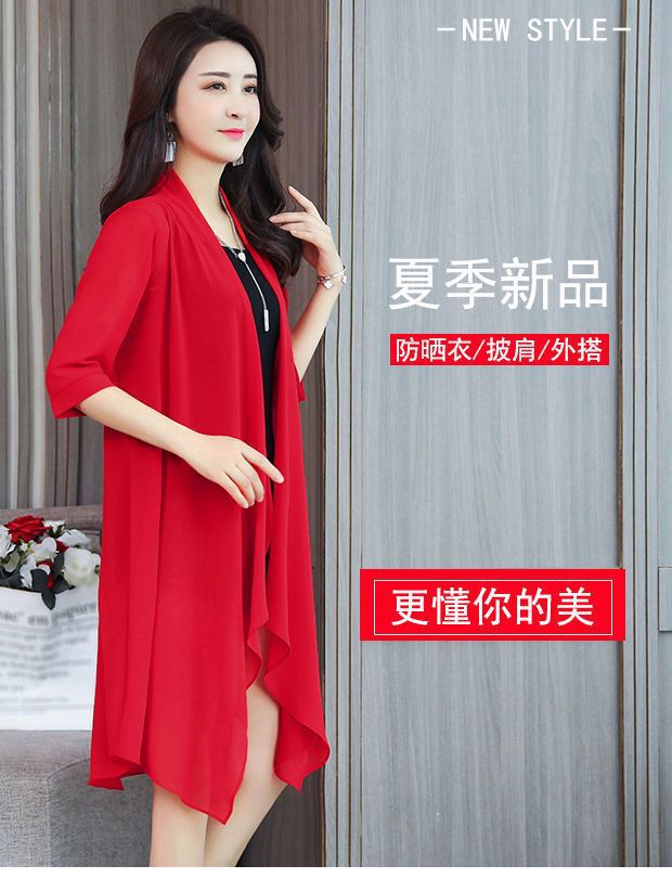 雪纺衫女2023年新款春夏款披肩外搭中长款外披开衫薄款衣外套
