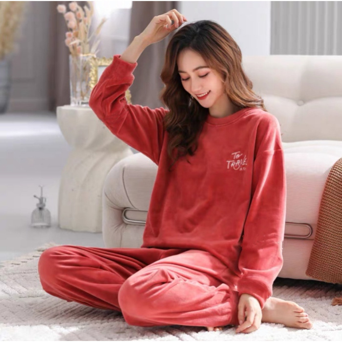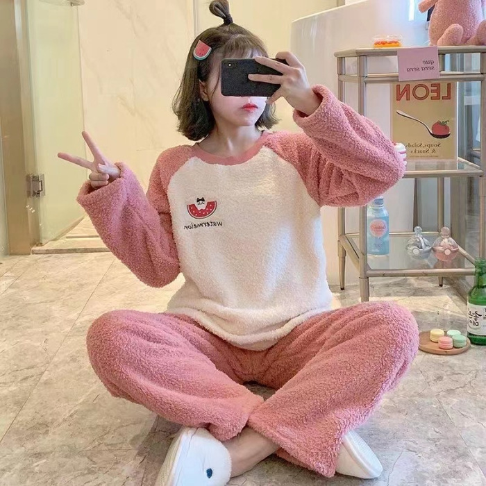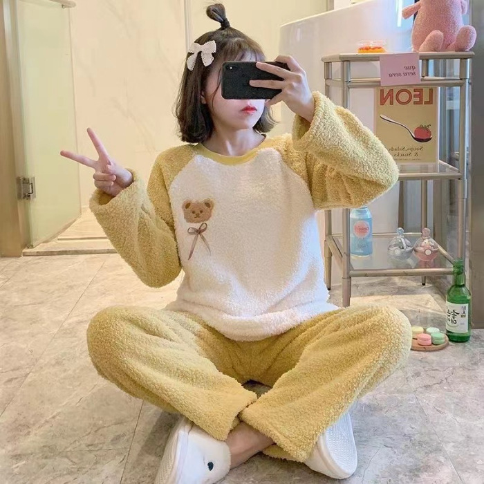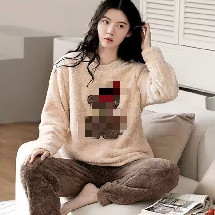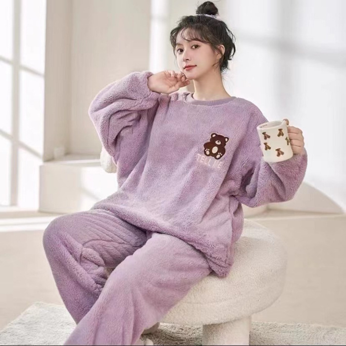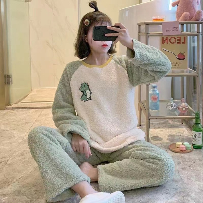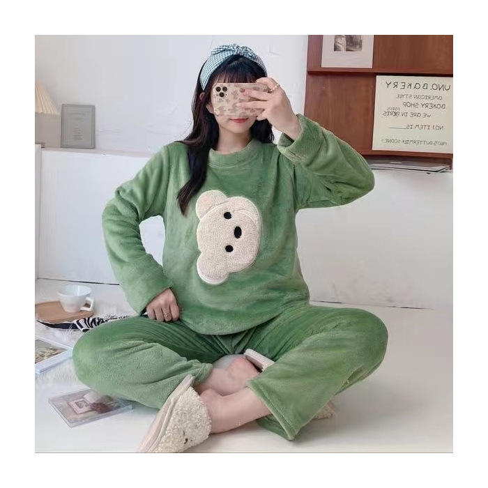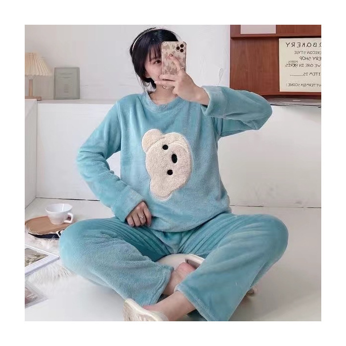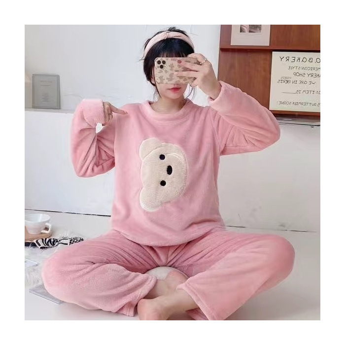플란넬 파자마 여성 만화 가을과 겨울 만화 긴 소매 풀오버 홈 의류 산호 양털 세트 대외 무역 도매 품종스토어 가기