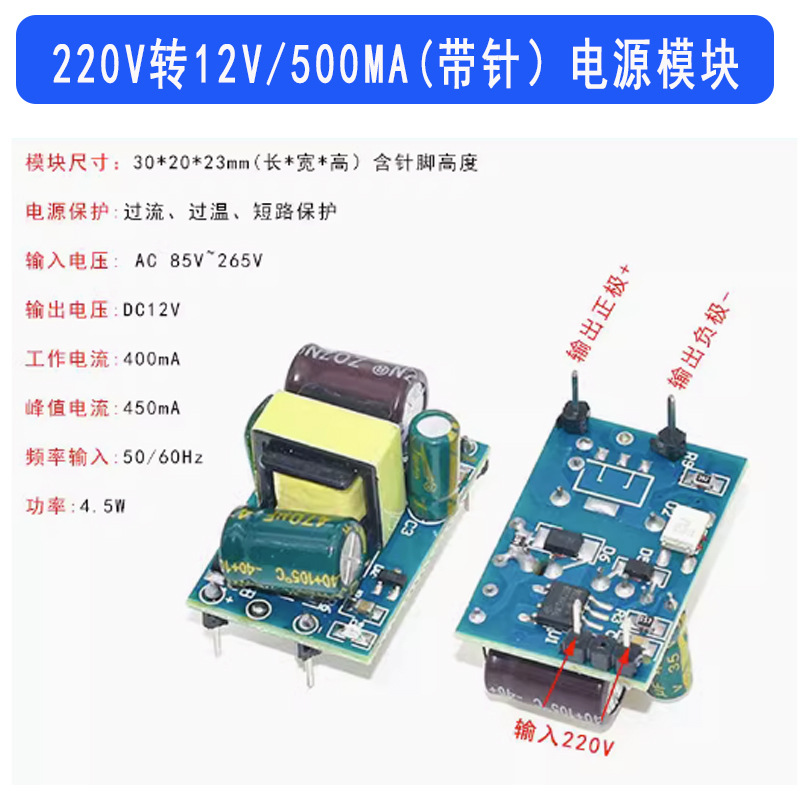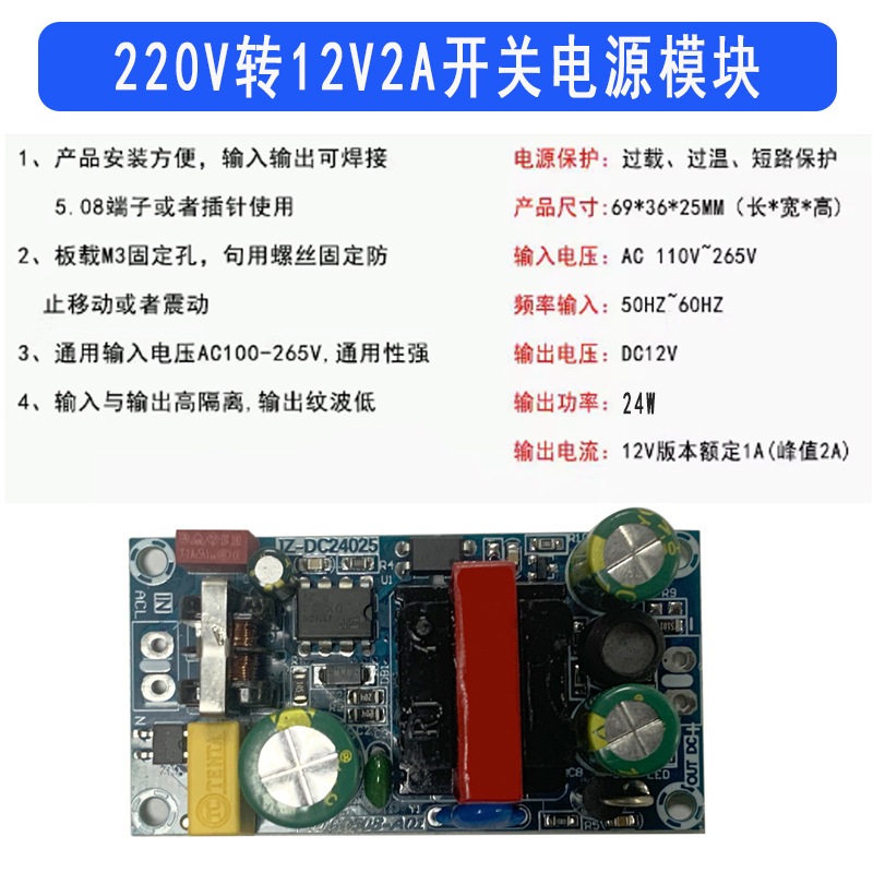 AC-DC降压模块220V转5V9V12V400/500/700MA/1A2A隔离开关电源模块