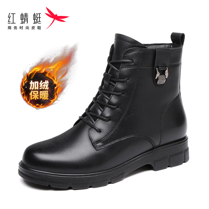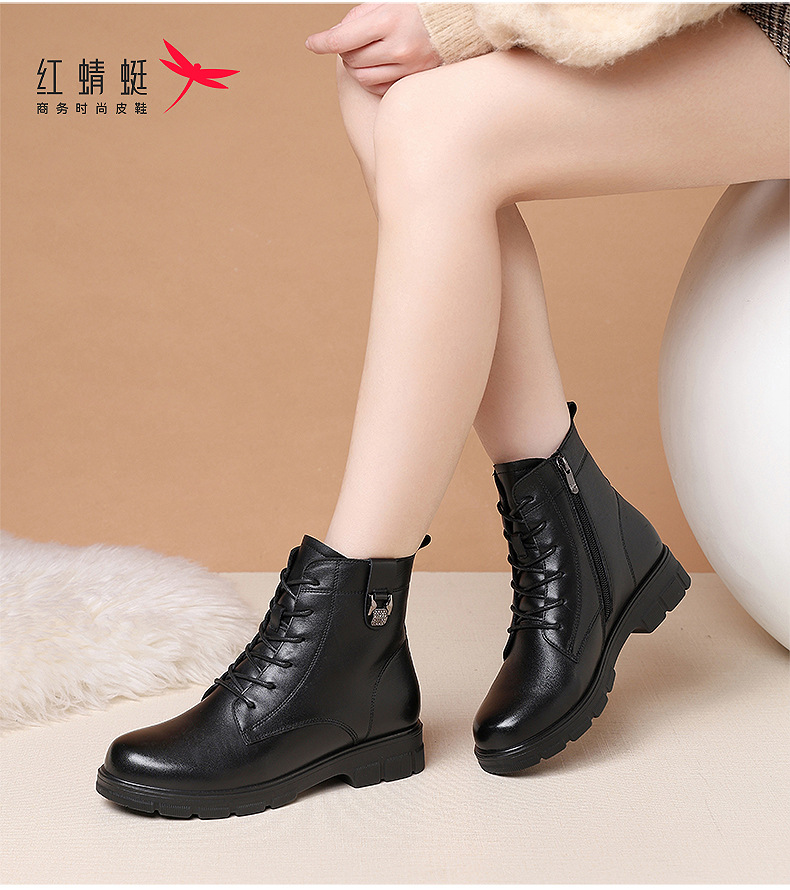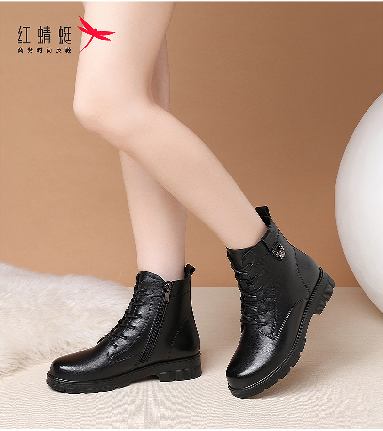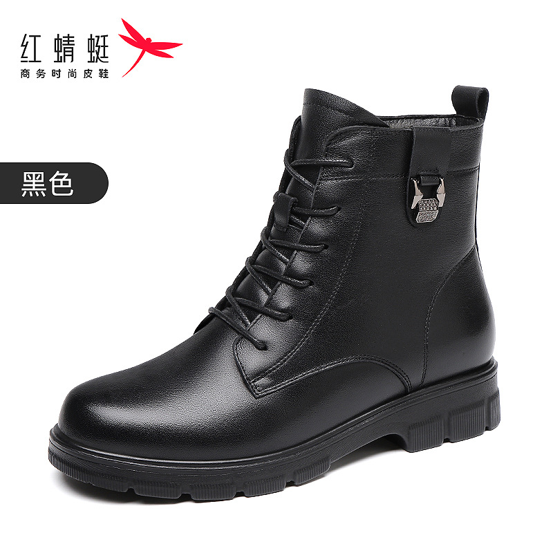 빨간 잠자리 여자의 신발 가을과 겨울 가죽 신발 여자의 영국 스타일 마틴 부츠 발 빛나는 작은 부츠 기모 따뜻한 짧은 부츠 전체 소가죽스토어 가기
