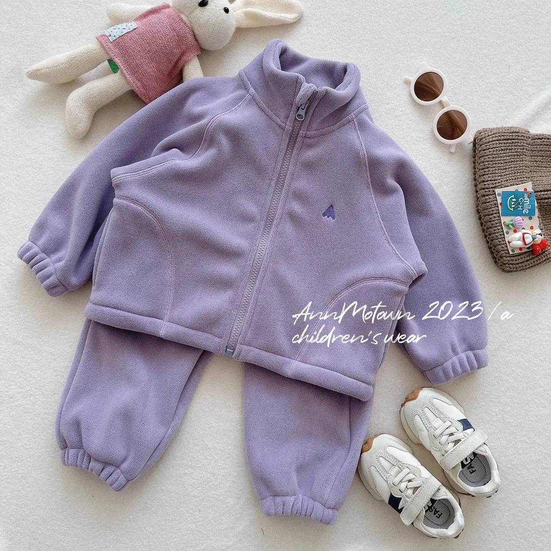 【핑크하우스】한국판 겨울 세트 2024 신상 달콤한 폴라 플리스 지퍼 재킷 캐주얼 팬츠 투피스 세트