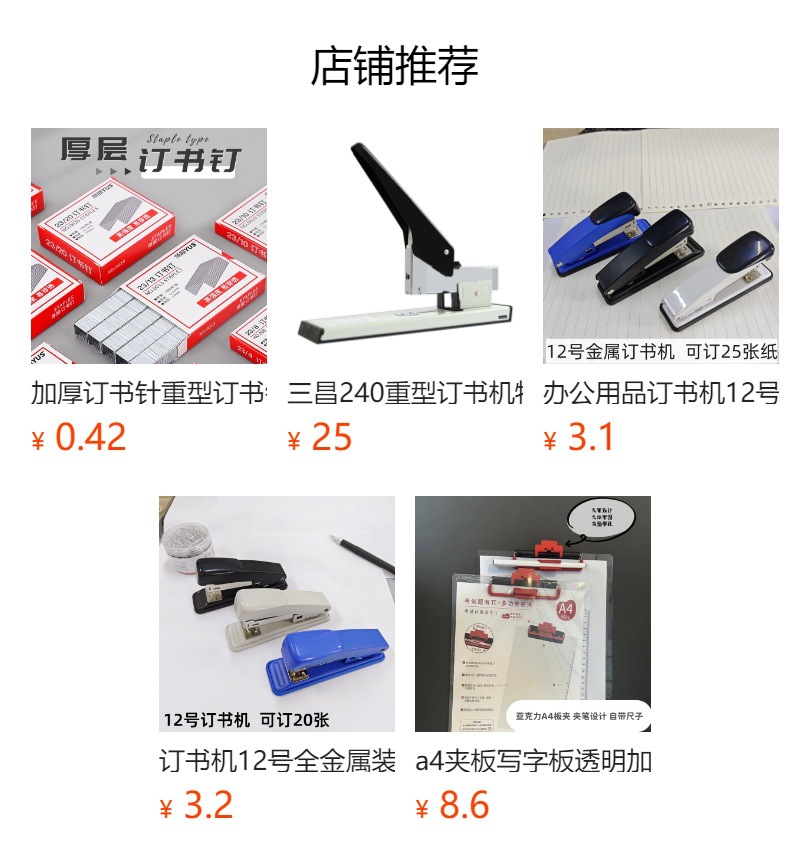 该款订书机订25张70g纸以内可用24/6针,订50张65g薄纸 可用24/8订书针。以下有实拍图