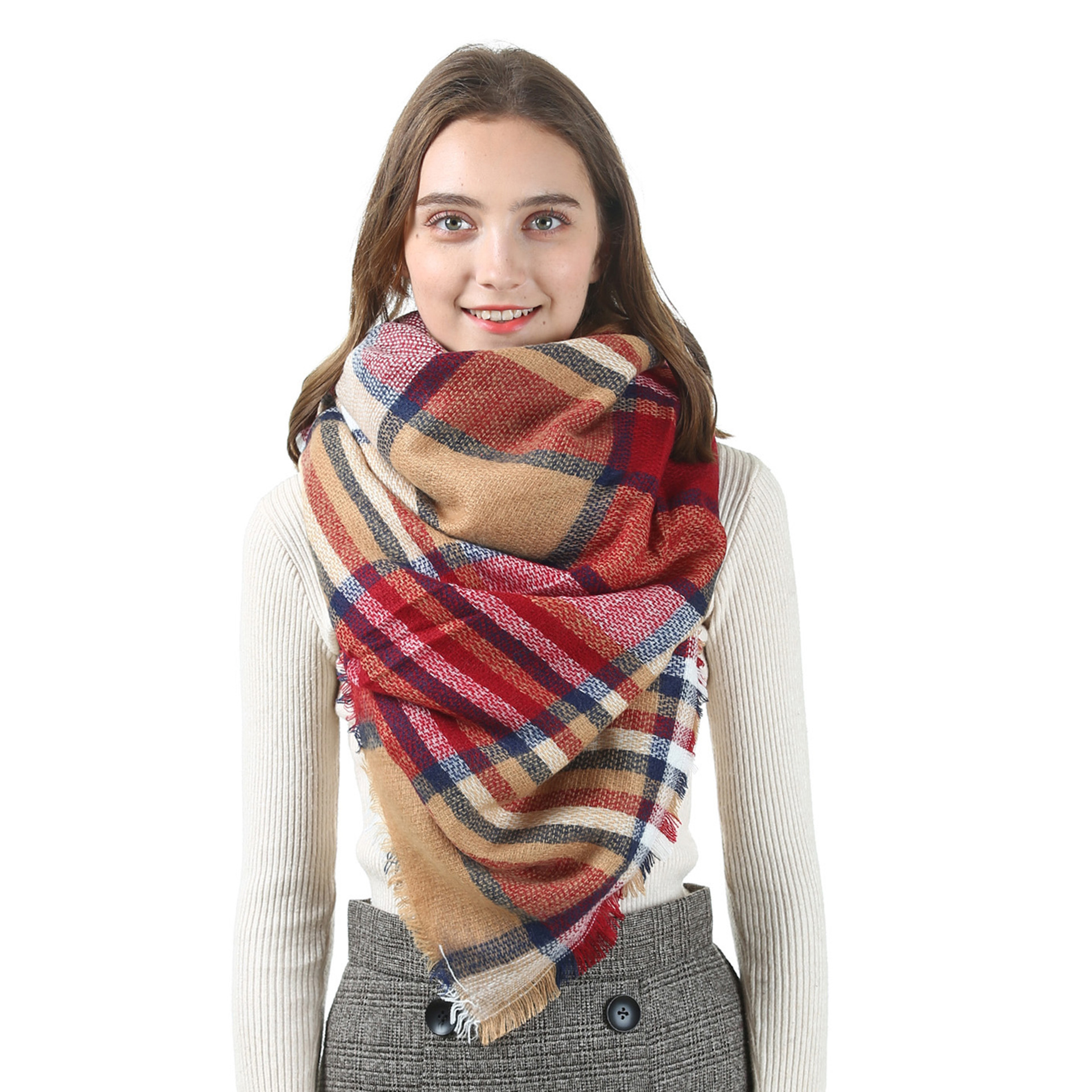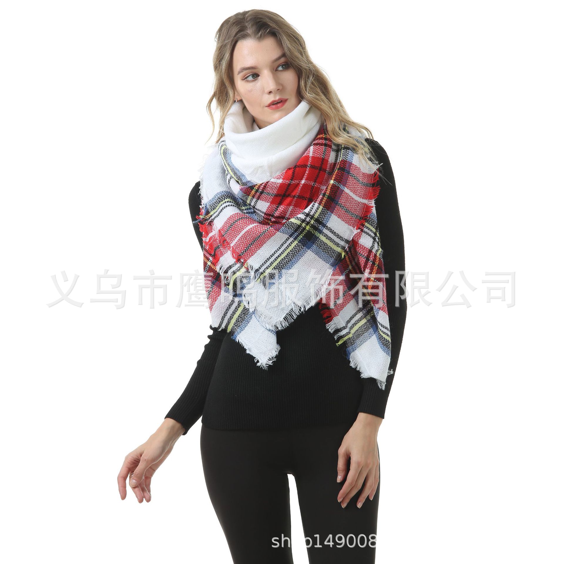 아마존 더운 가을과 겨울 캐시미어 스카프 분할 목도리 숙녀 격자 무늬 삼각형 스카프 따뜻한 스카프