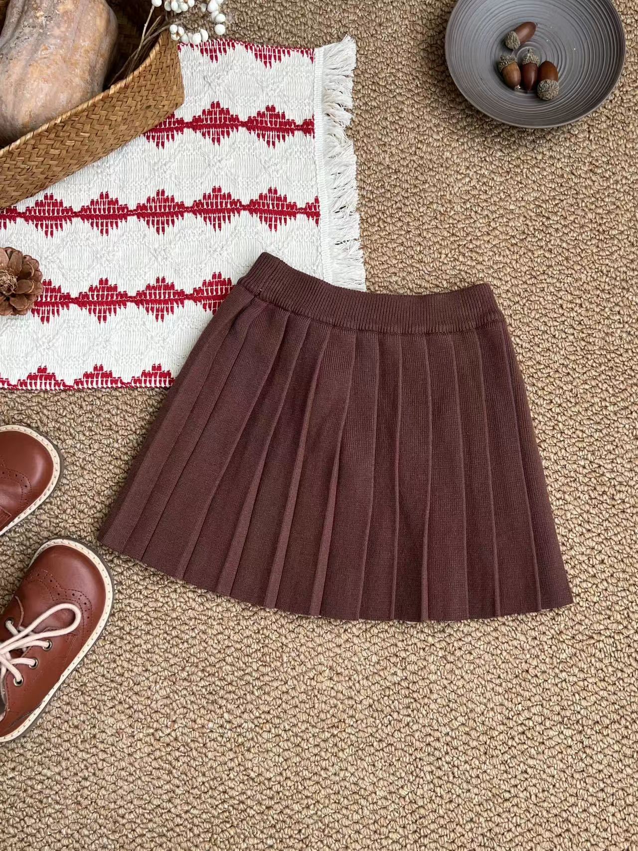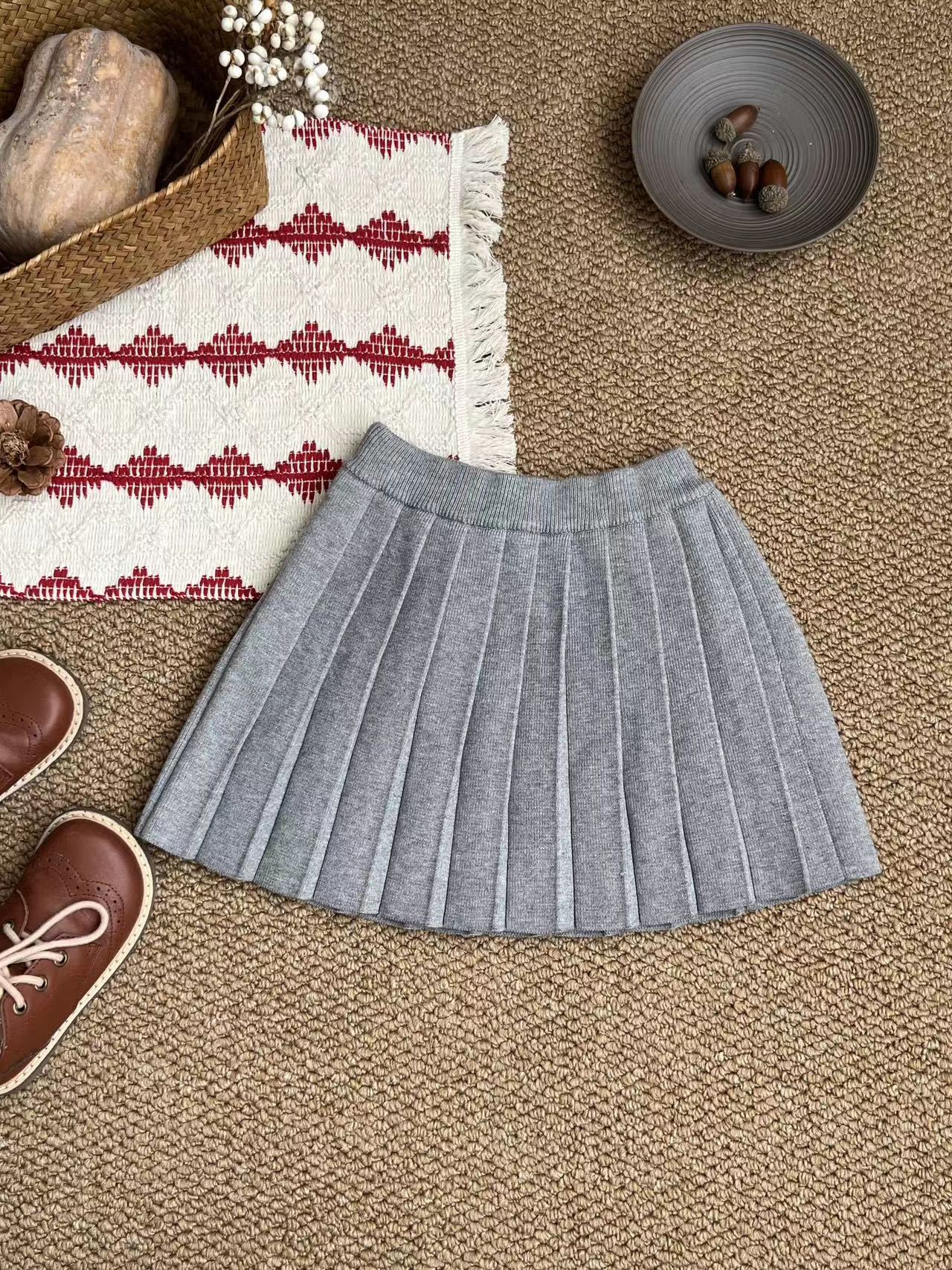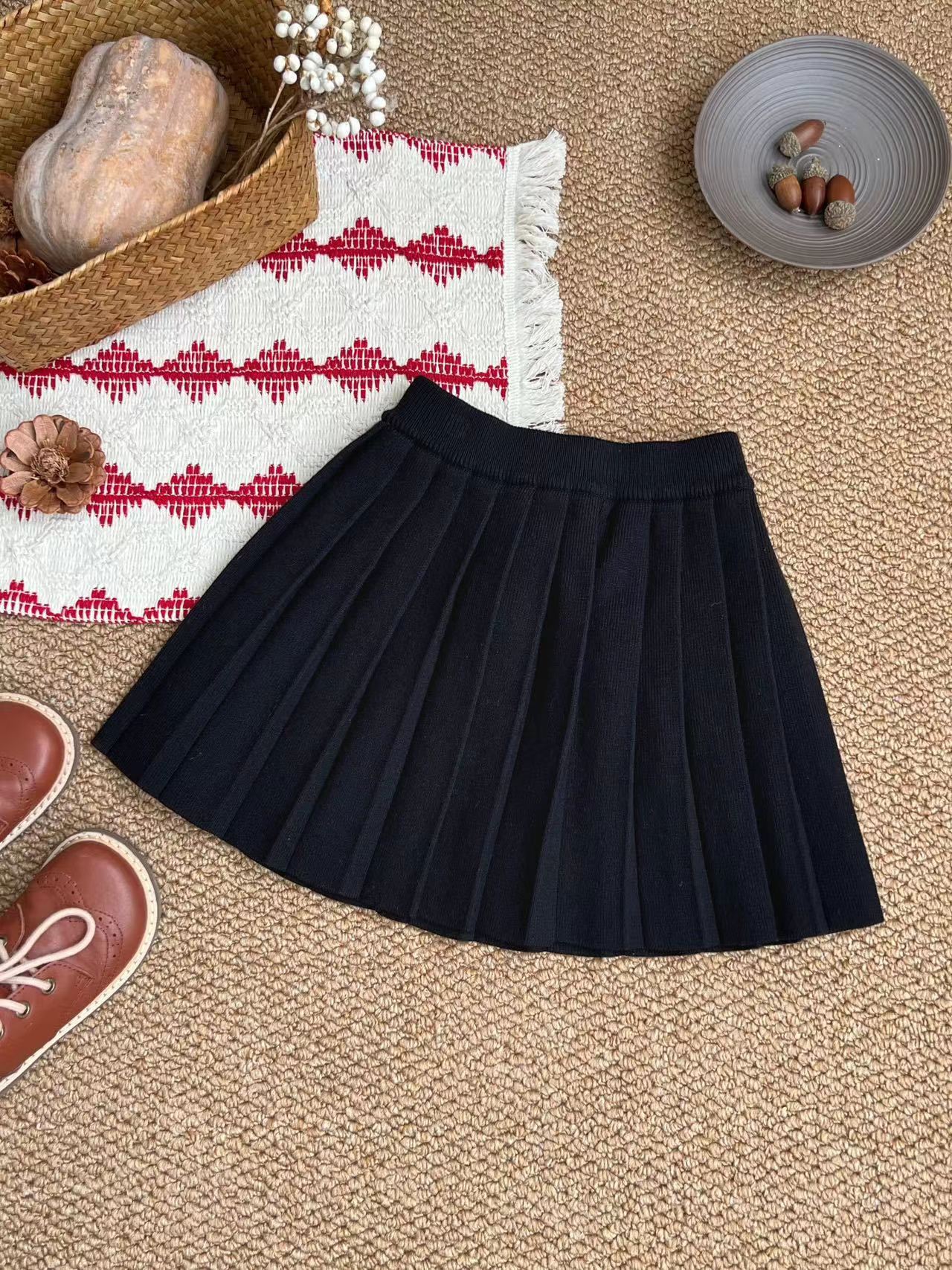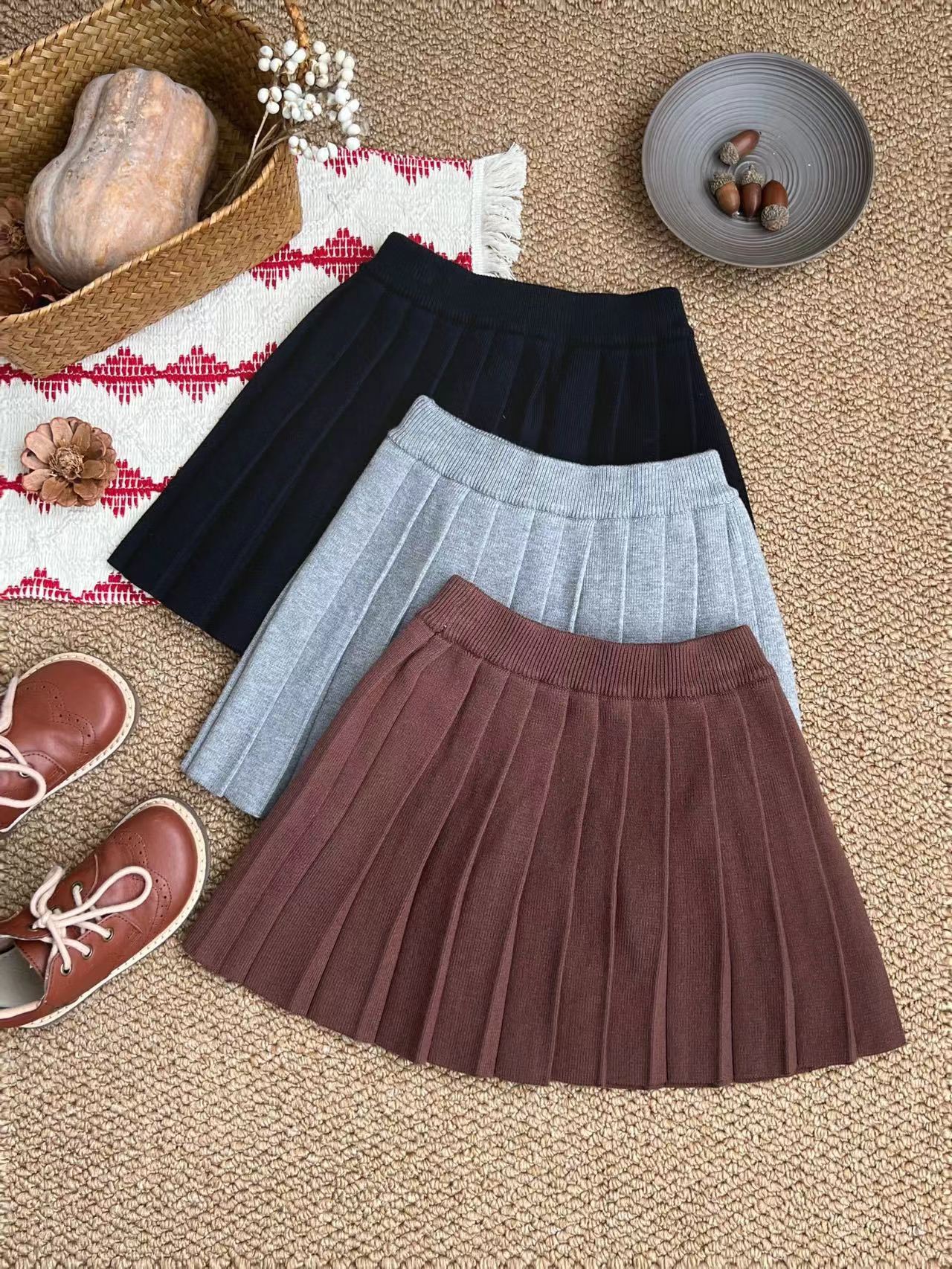 In2023 어린이 스커트 가을 겨울 봄 새로운 솔리드 컬러 니트 플리츠 스커트 모든 매치 여아 스커트