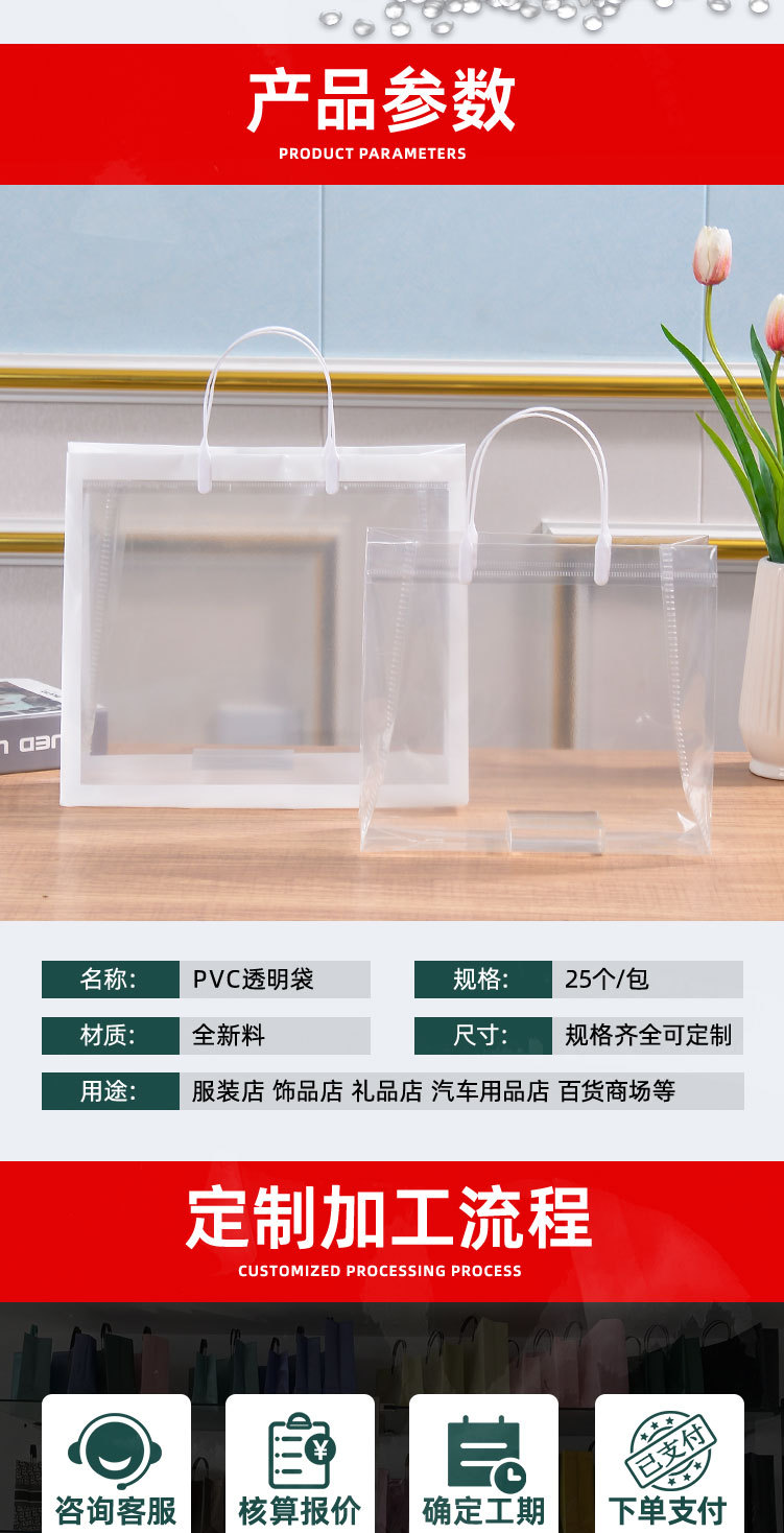 PVC 투명 핸드백 두꺼운 기념품 가방 의류 가방 비닐봉투 맞춤형 외출용 핸드백 인스 스타일스토어 가기