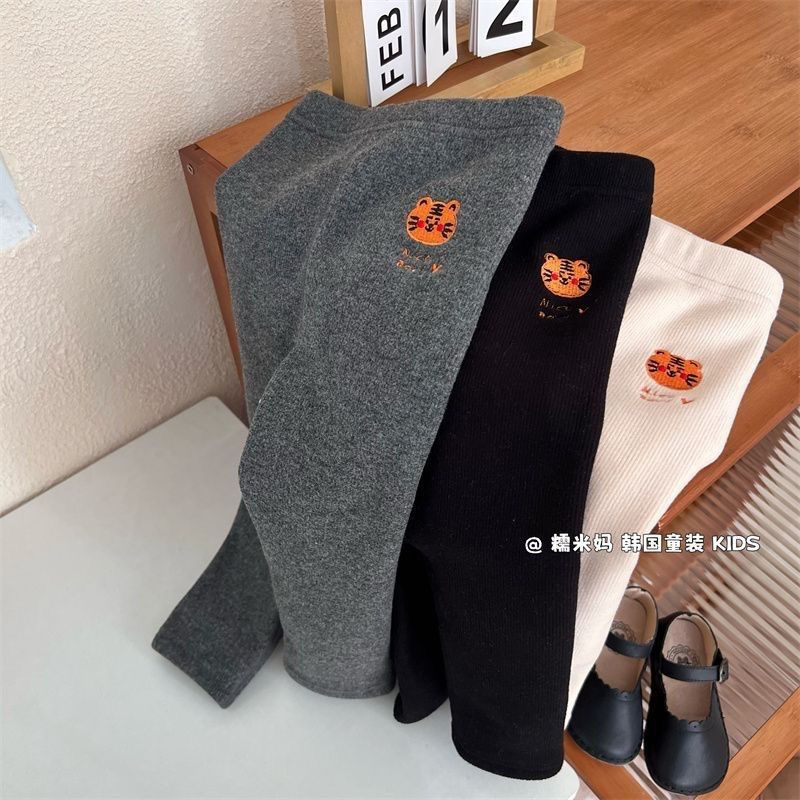 어린이 기모 레깅스 2022 새로운 겨울 아기 소녀 두꺼운 캐주얼 바지 어린이 단색 패션 바지