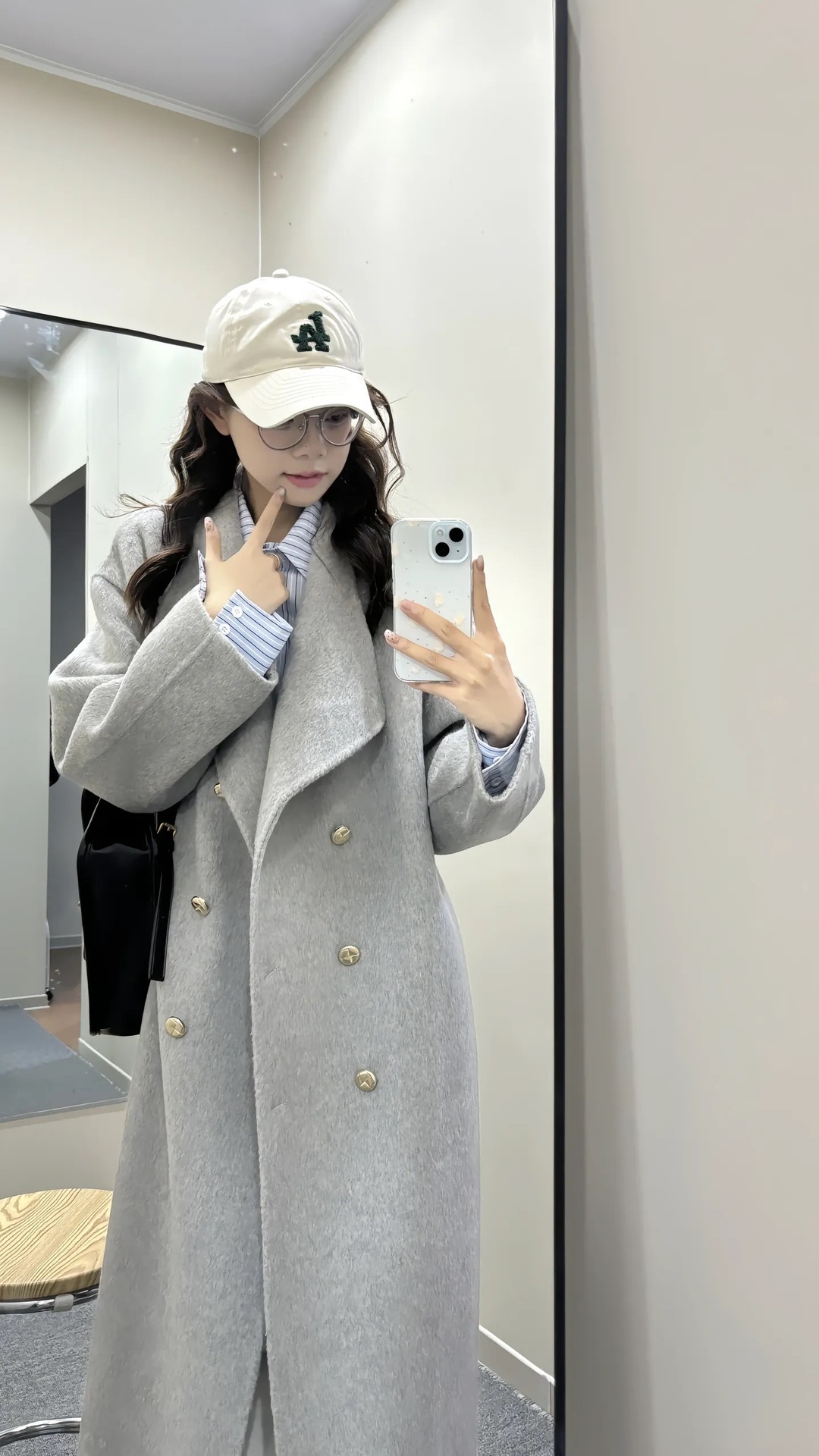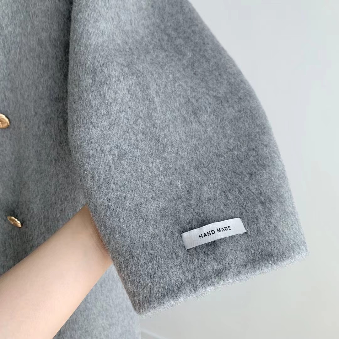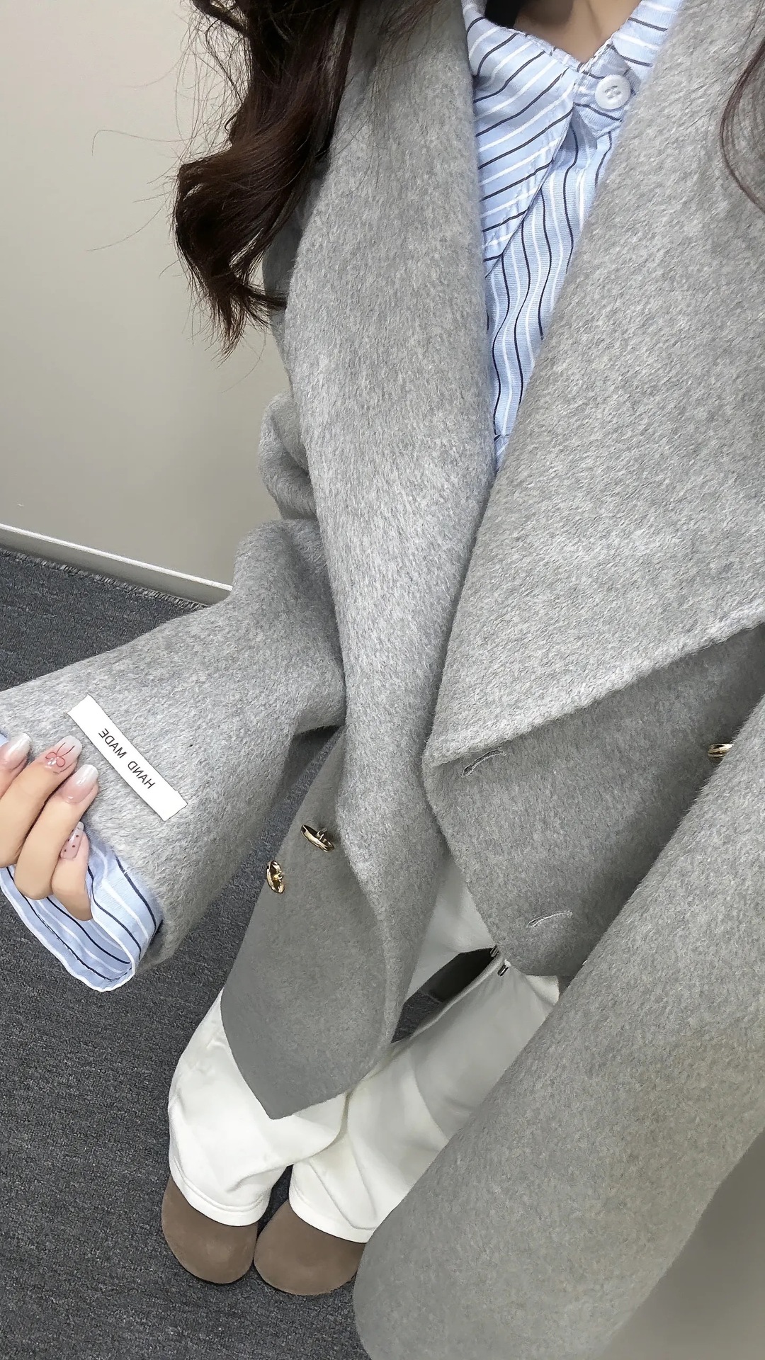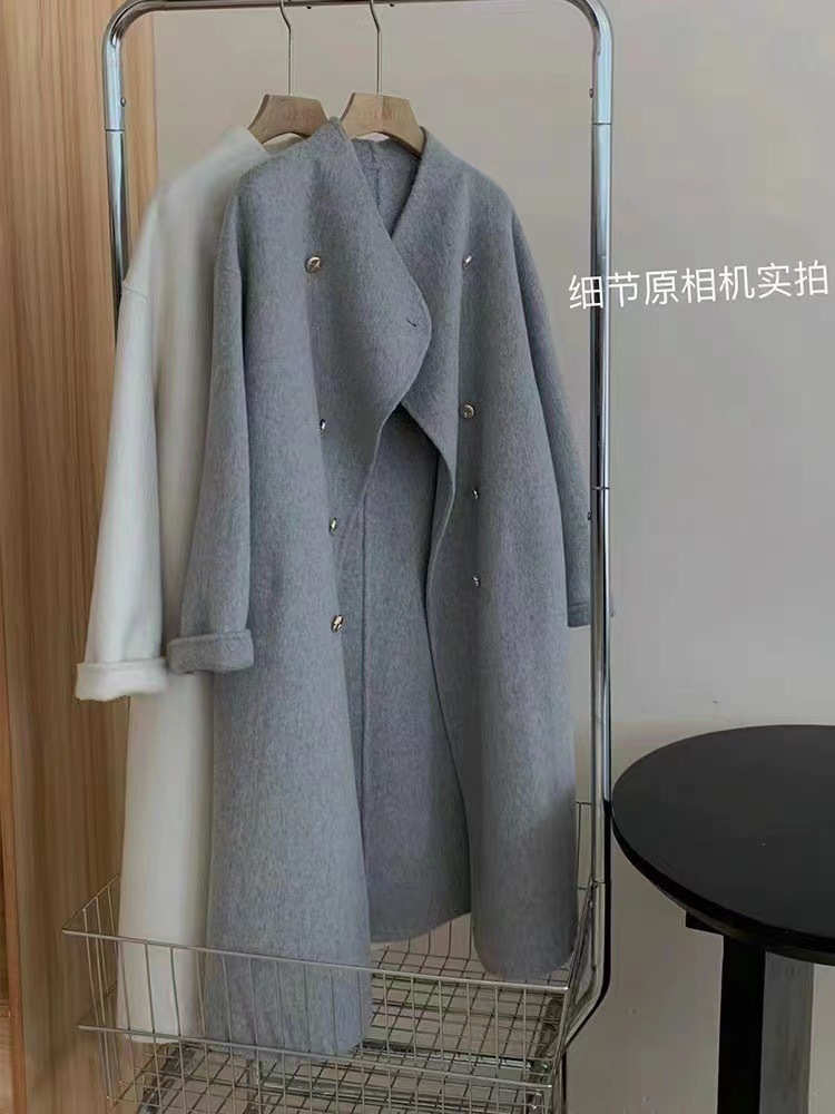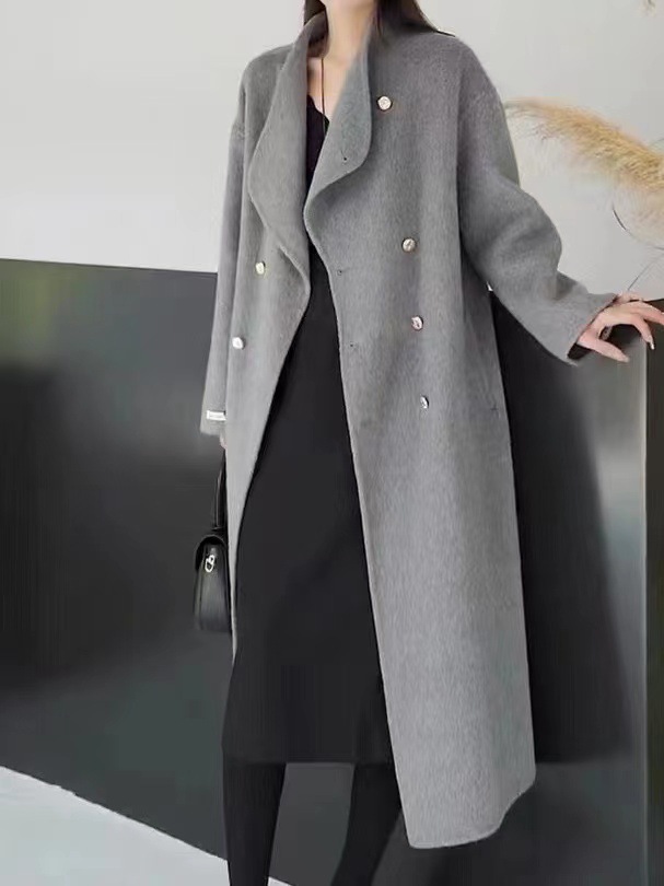 가을 겨울 스탠드 칼라 더블 버튼 비대칭 롱 루즈 캐시미어 코트 여성 고급스러운 스타일 한국판스토어 가기