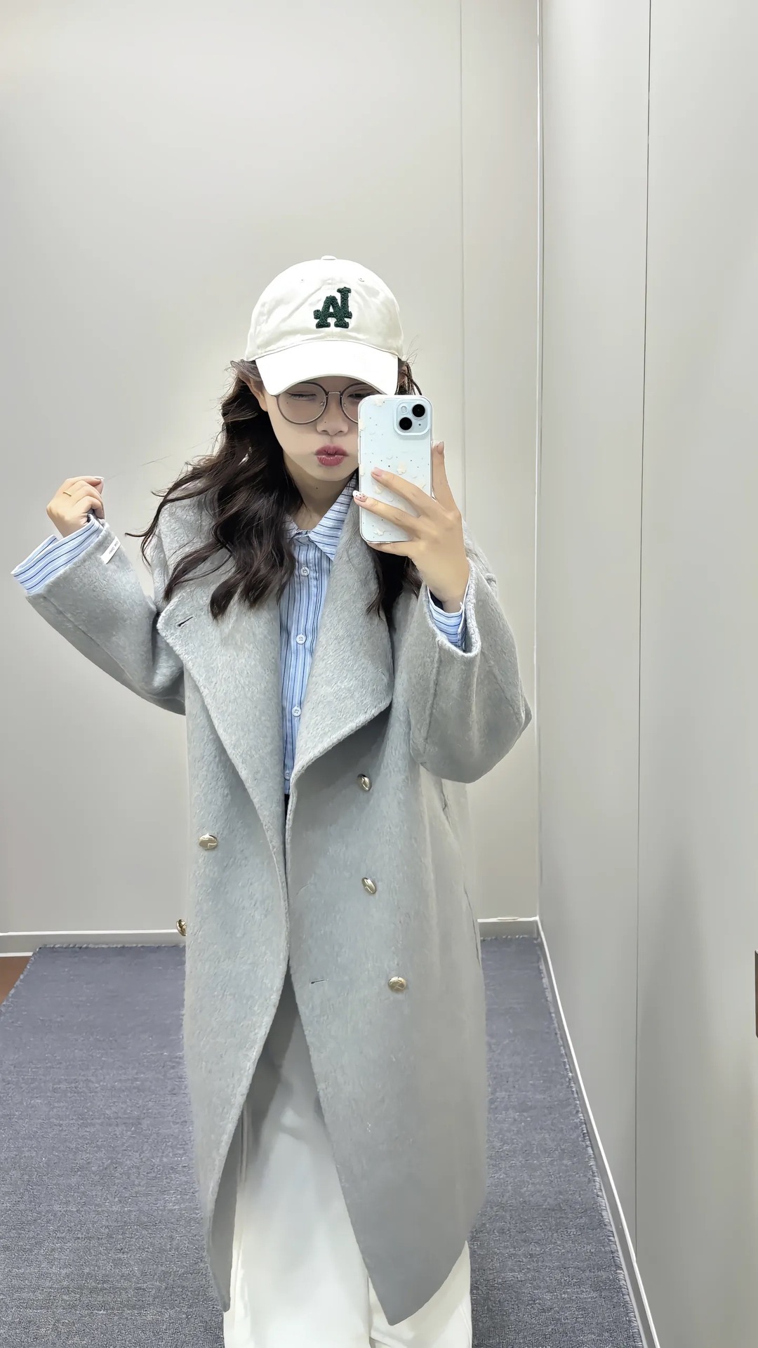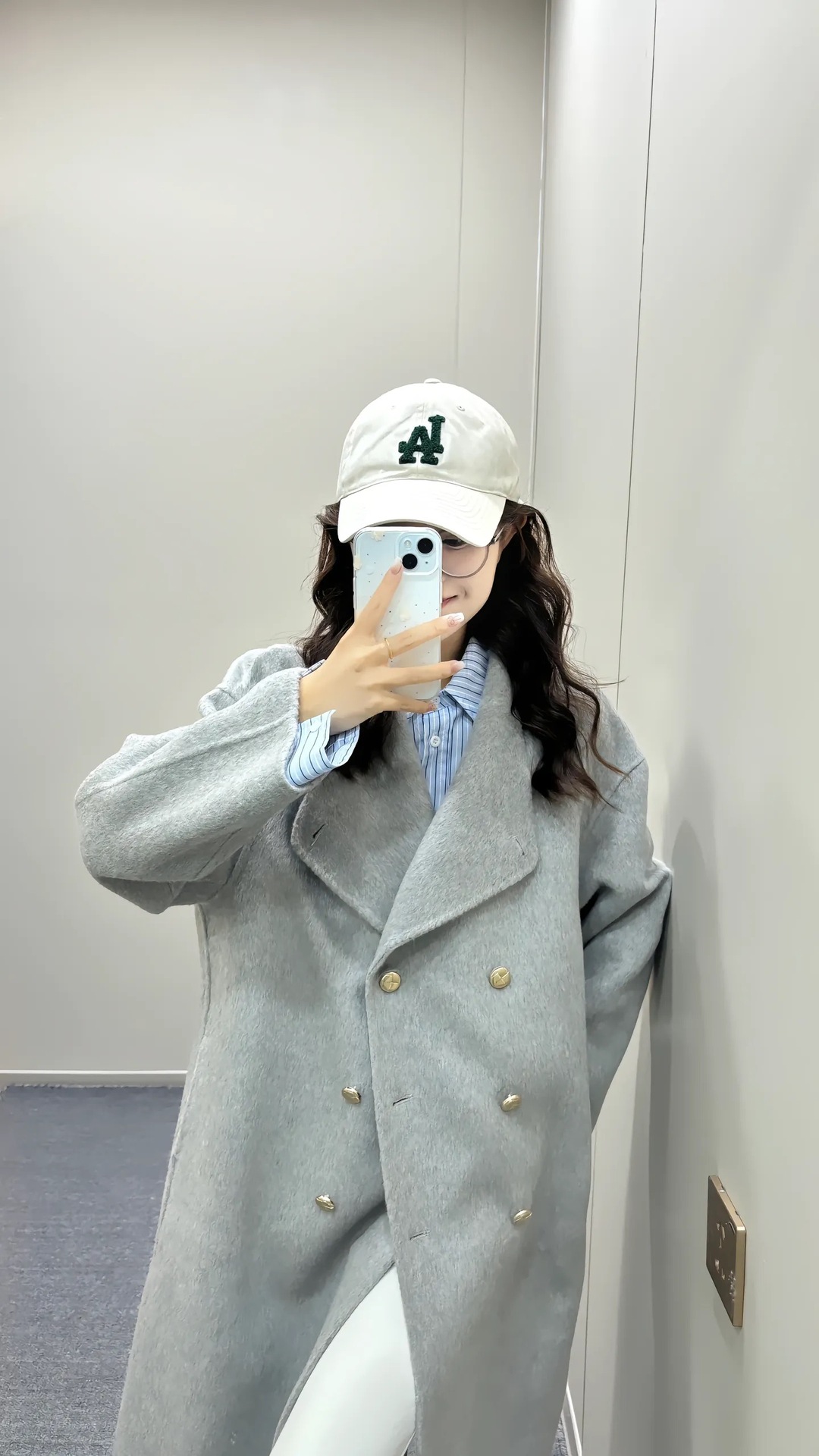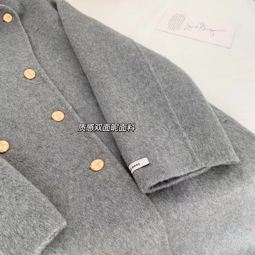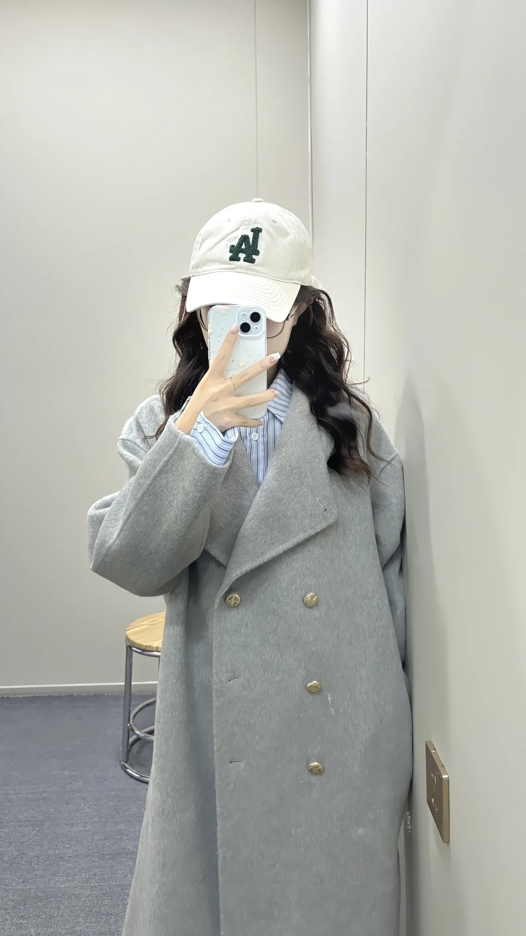 가을 겨울 스탠드 칼라 더블 버튼 비대칭 롱 루즈 캐시미어 코트 여성 고급스러운 스타일 한국판스토어 가기