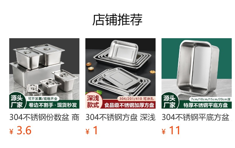 304 스테인레스 스틸 스퀘어 플레이트 깊고 얕은 김이 나는 쌀판 두꺼운 바베큐 플레이트 구운 생선 접시 펀칭 차 연못 스퀘어 플레이트 스퀘어 트레이스토어 가기