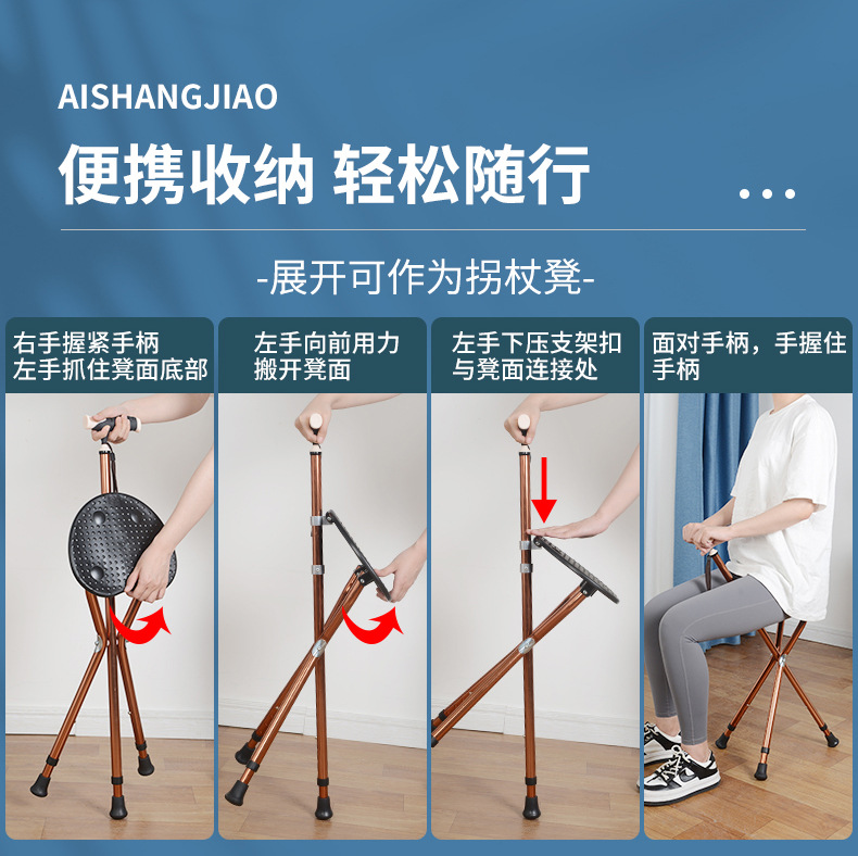노인 지팡이 의자 3 다리 다기능 접이식 보행 지팡이 의자 가벼운 지팡이 의자 조절 가능한 지팡이 의자스토어 가기