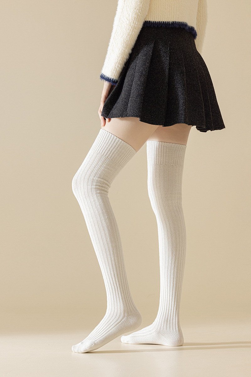 두꺼운 바늘 한국 무릎 위 양말 롱 부츠 양말 가을과 겨울 두꺼운 따뜻한 허벅지 양말 세로 줄무늬 슬리밍 양말 여성 유행