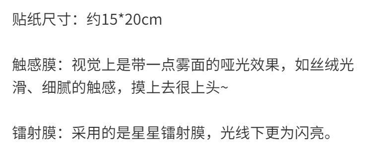 贴纸:合成纸+铜板底+触感膜/镭射膜